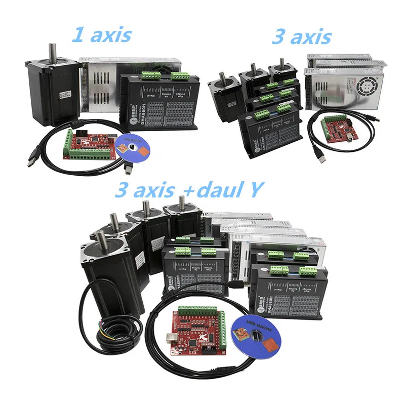 1 Ось:1 комплект 4,5/8,5/12nm шаговый двигатель + DM860H Драйвер + 350w6 0v источника питания + mach33 оси:Комплект из 3 предметов; 4,5/8,5/12nm шаговый двигатель + DM860H Драйвер + 350w6 с напряжением 0 В источника питания1 комплект mach33 оси + дол Y:4 компл 4,5/8,5/12nm шаговый двигатель + DM860H Драйвер + 350w6 с напряжением 0 В источника питания1 комплект mach3