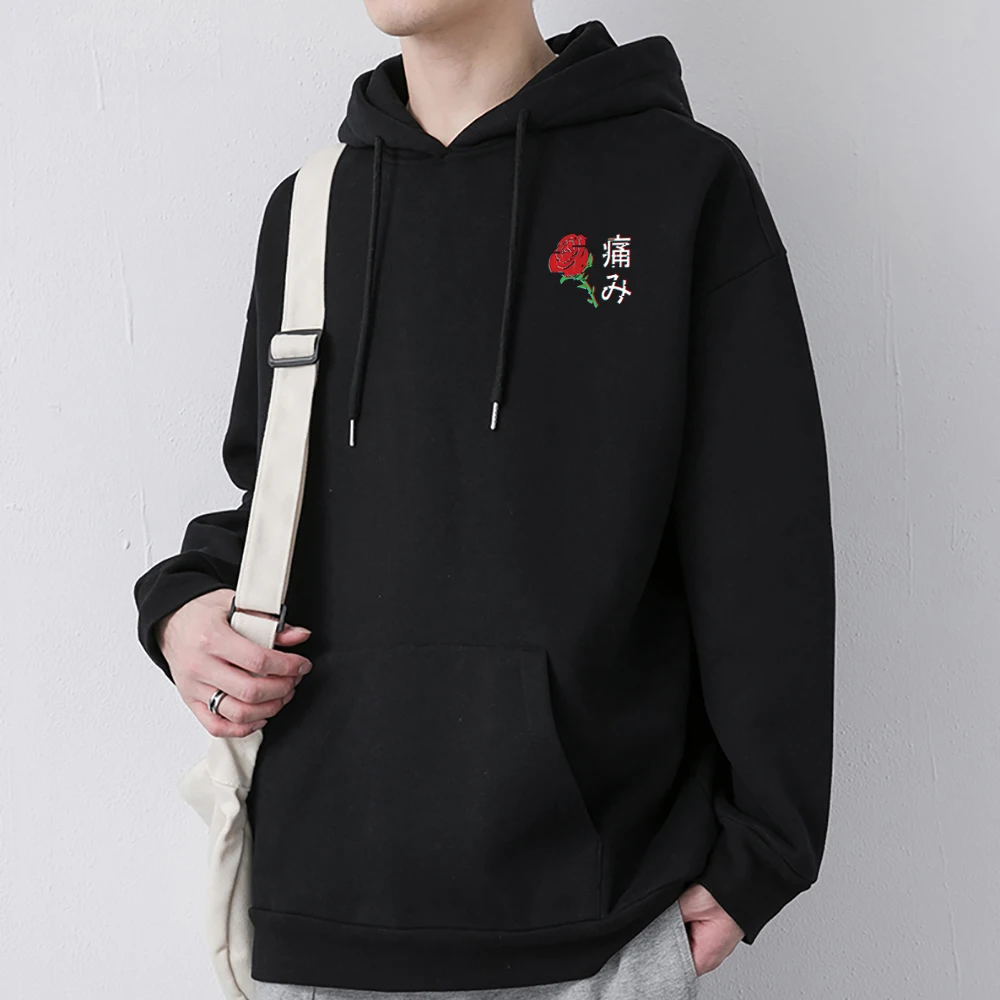 Худи мужское флисовое в японском стиле, уличная одежда с рисунком роз, брендовый спортивный костюм, стильный свитшот в стиле Харадзюку, весна