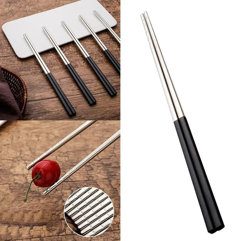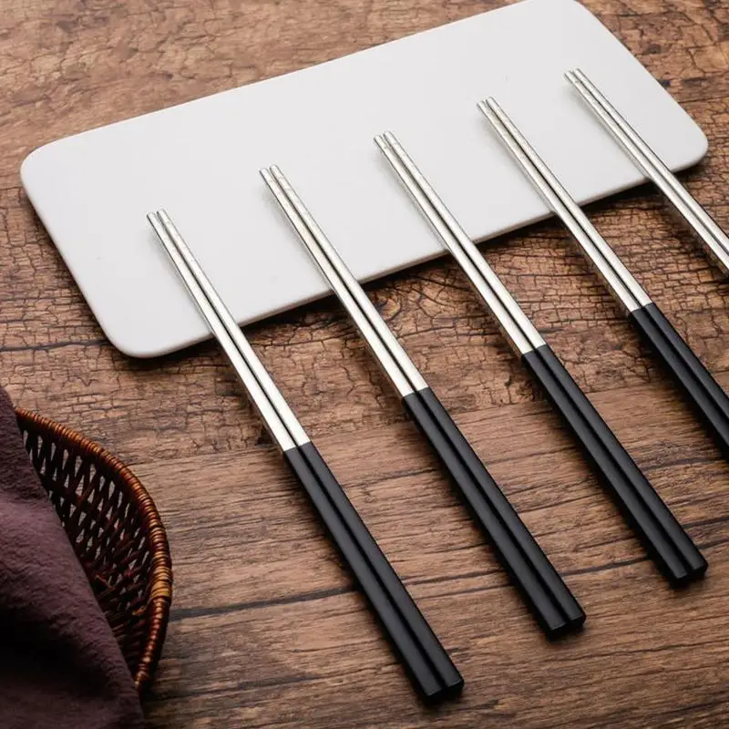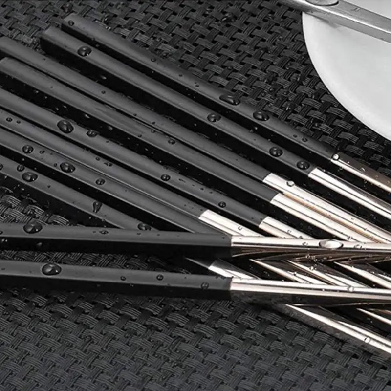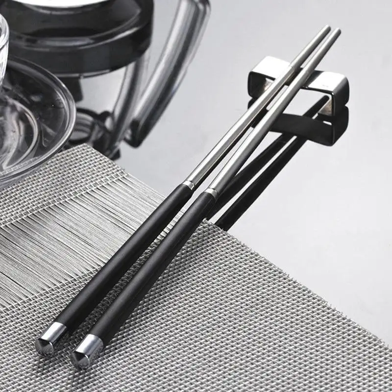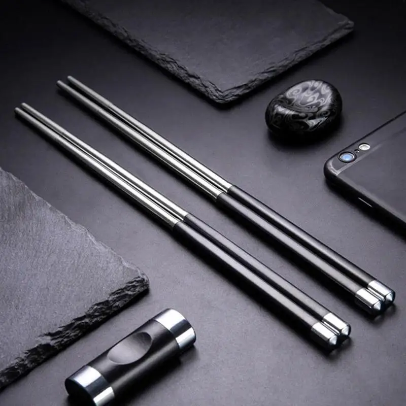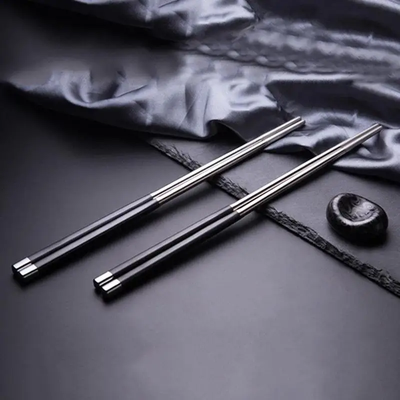 1 пара матовых черных стальных палочек для еды, палочки для еды, роскошные палочки, Корейская гравировка, полые столовые приборы Dro W2I8