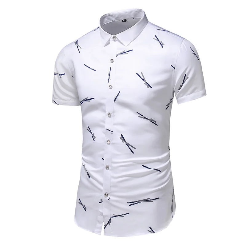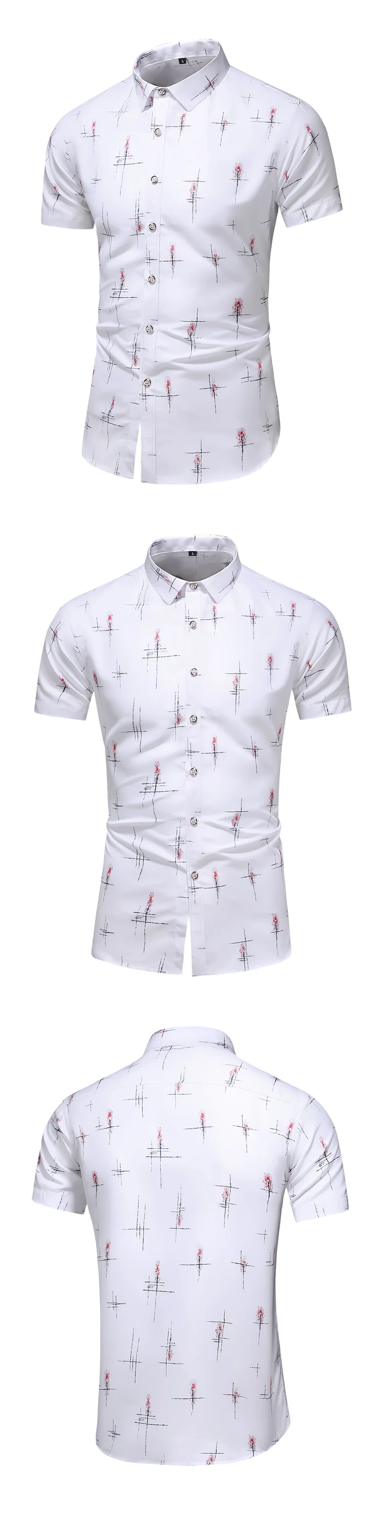 Рубашка Мужская дышащая хлопковая с принтом, облегающая сорочка из Гавайского хлопка с короткими рукавами для отпуска, Офисная Повседневная Рабочая, размера плюс 7XL, лето