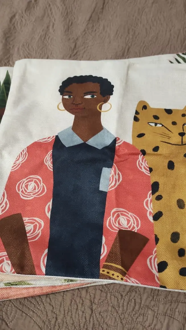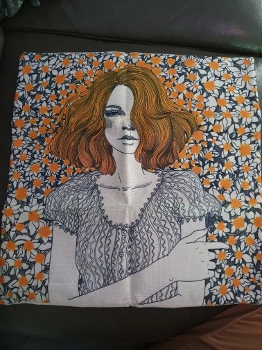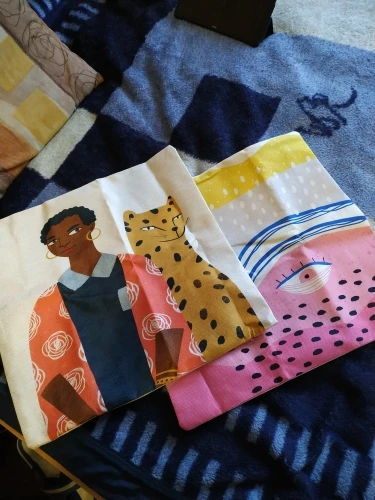 наволочки хорошие, материал похож на мешковину но более качественный и приятный, прошито хорошо ниток лишних нет, молнии потайные легко растегиваются и застегиваются, рисунок прокрашен, не лопнет и не сотреться, соответствует заказаному