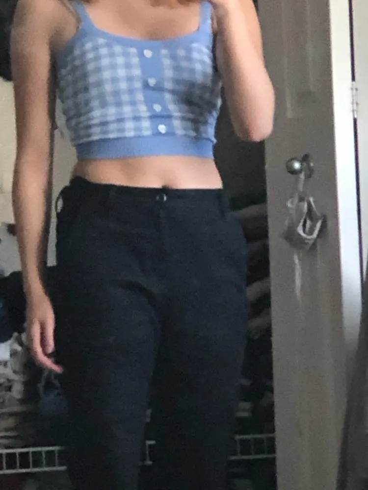 Укороченный Топ выглядит так, как в описании. Материал довольно приятный. Очень доволен поставщиком. Спасибо!