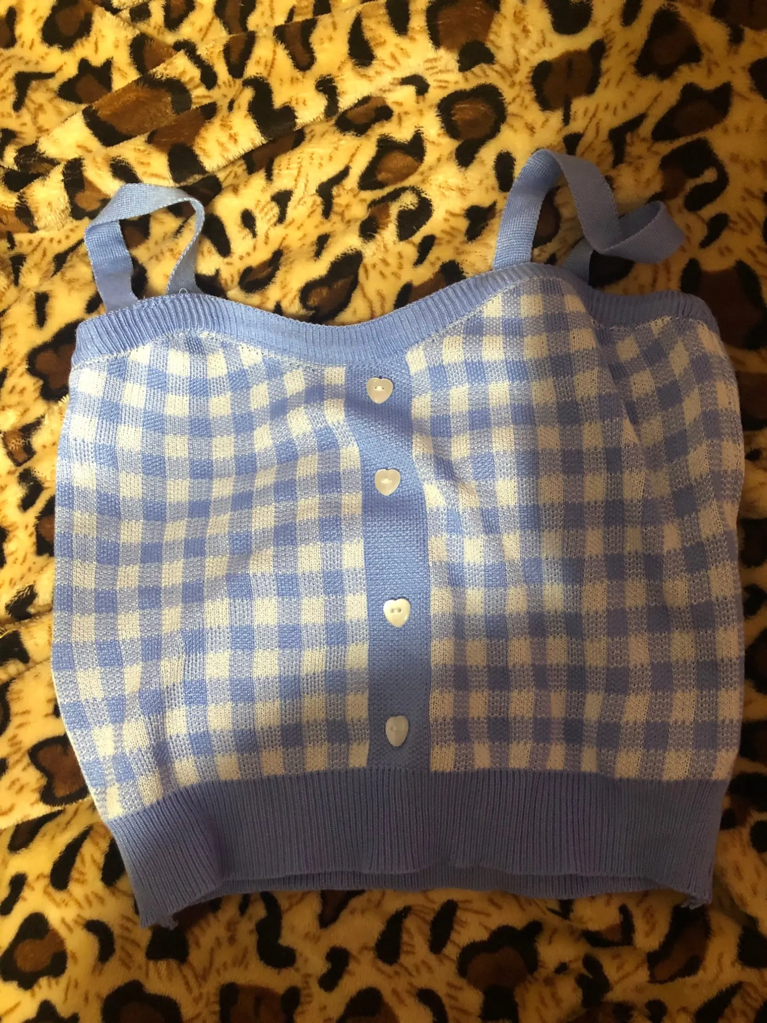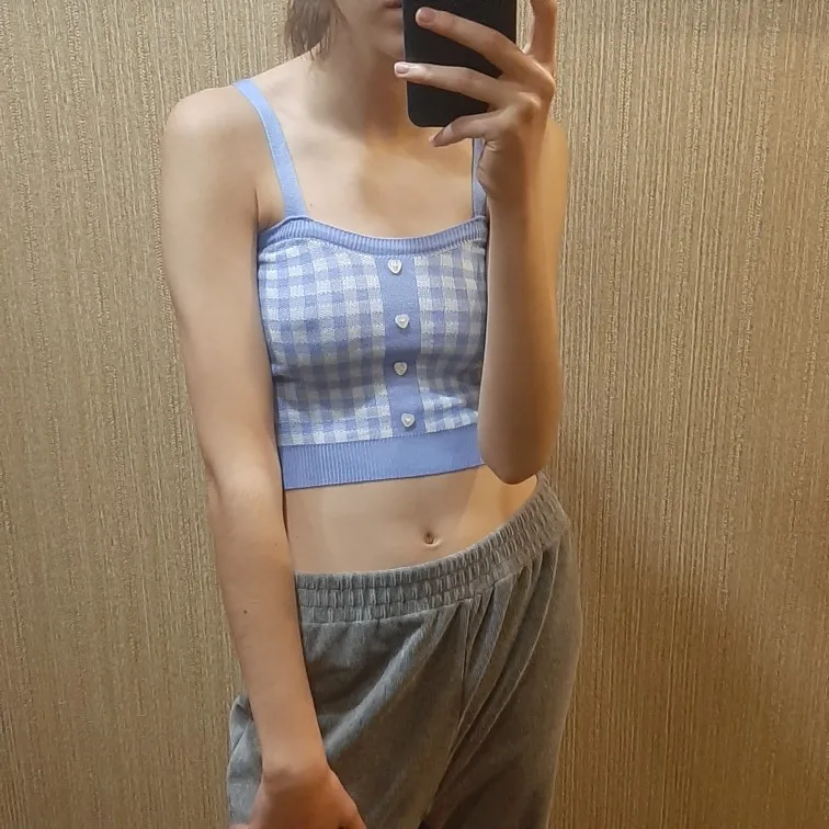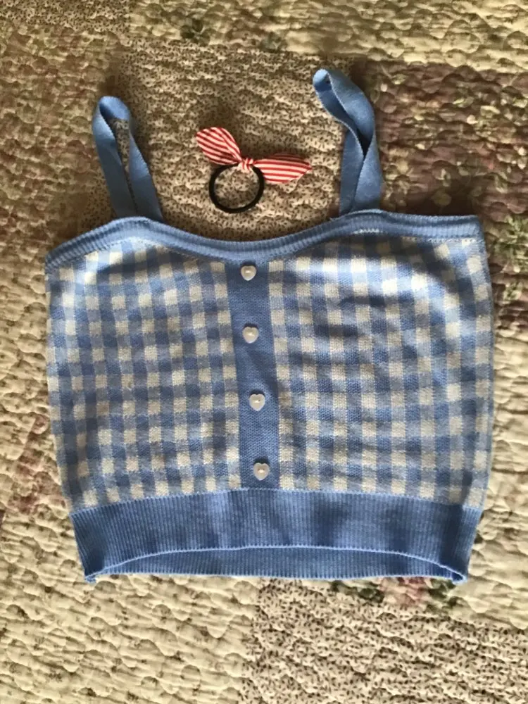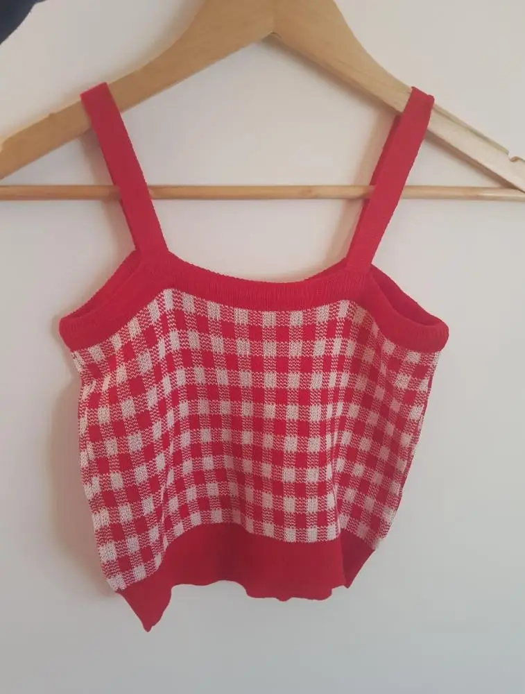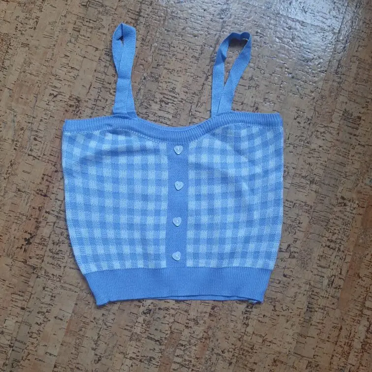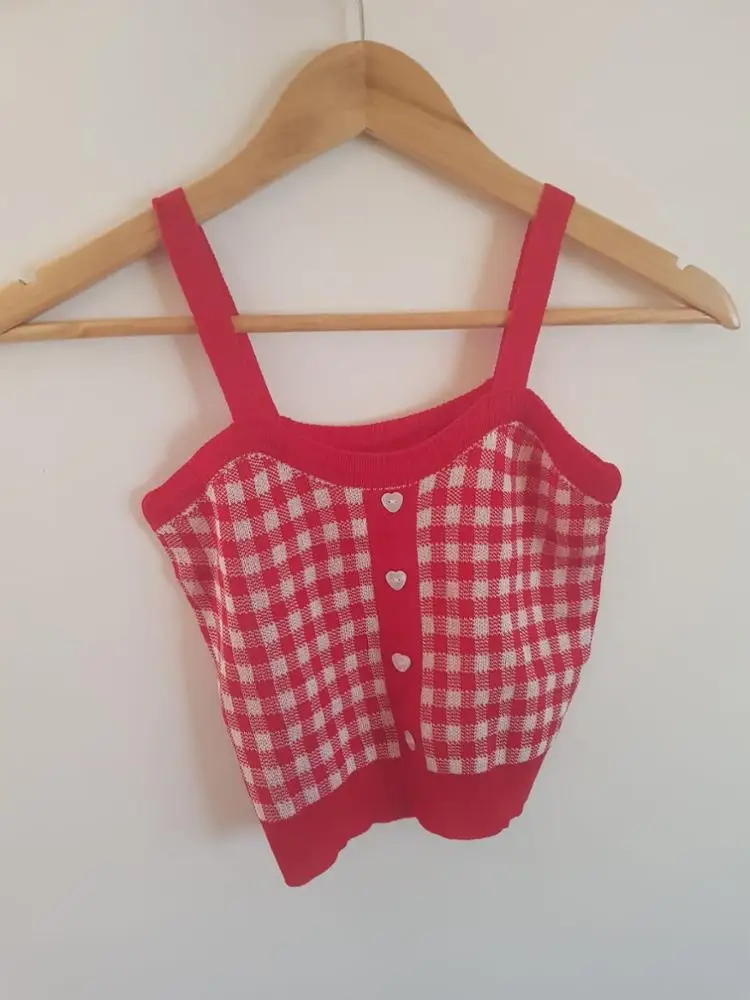 Топ женский трикотажный на пуговицах и на лето, клетчатые Короткие топы