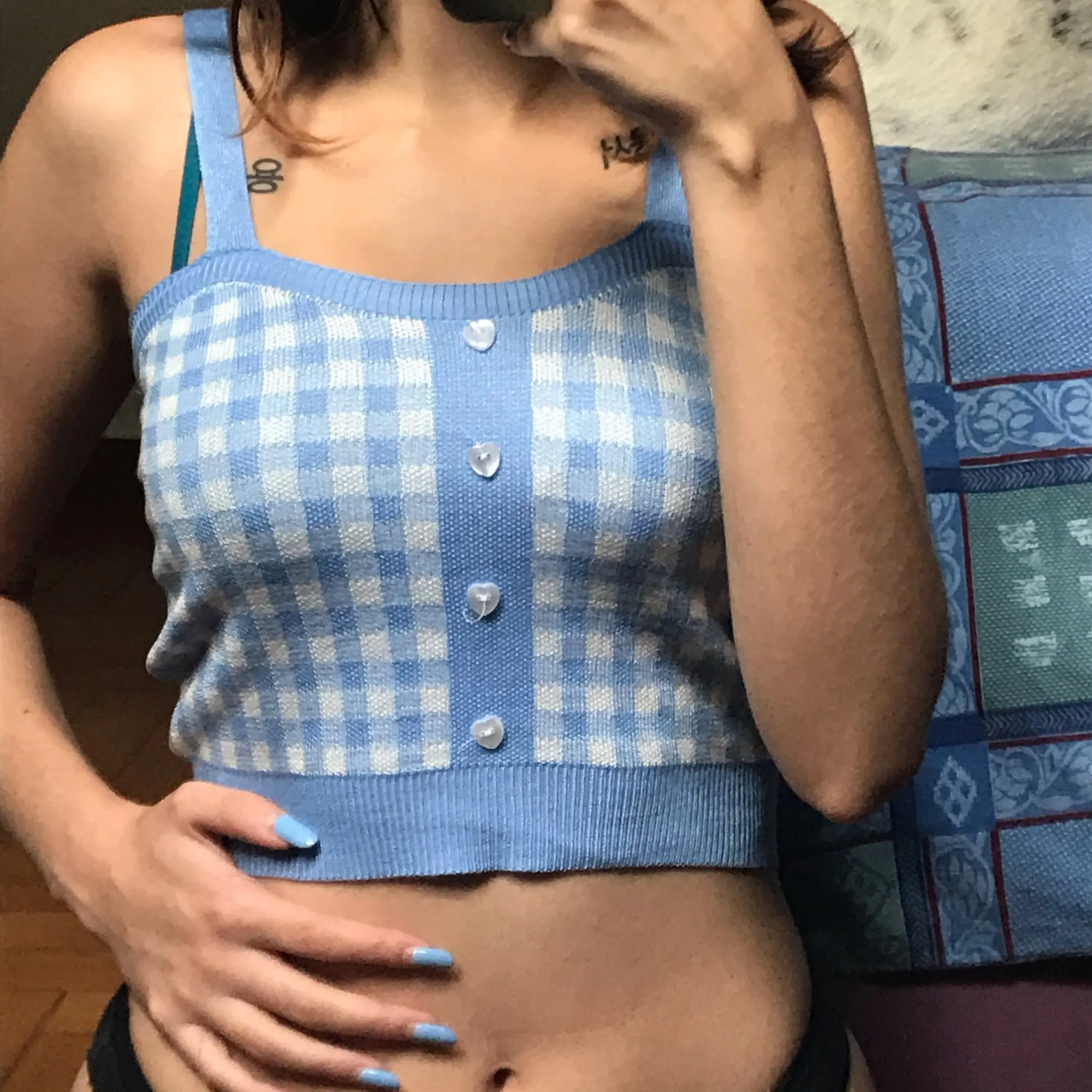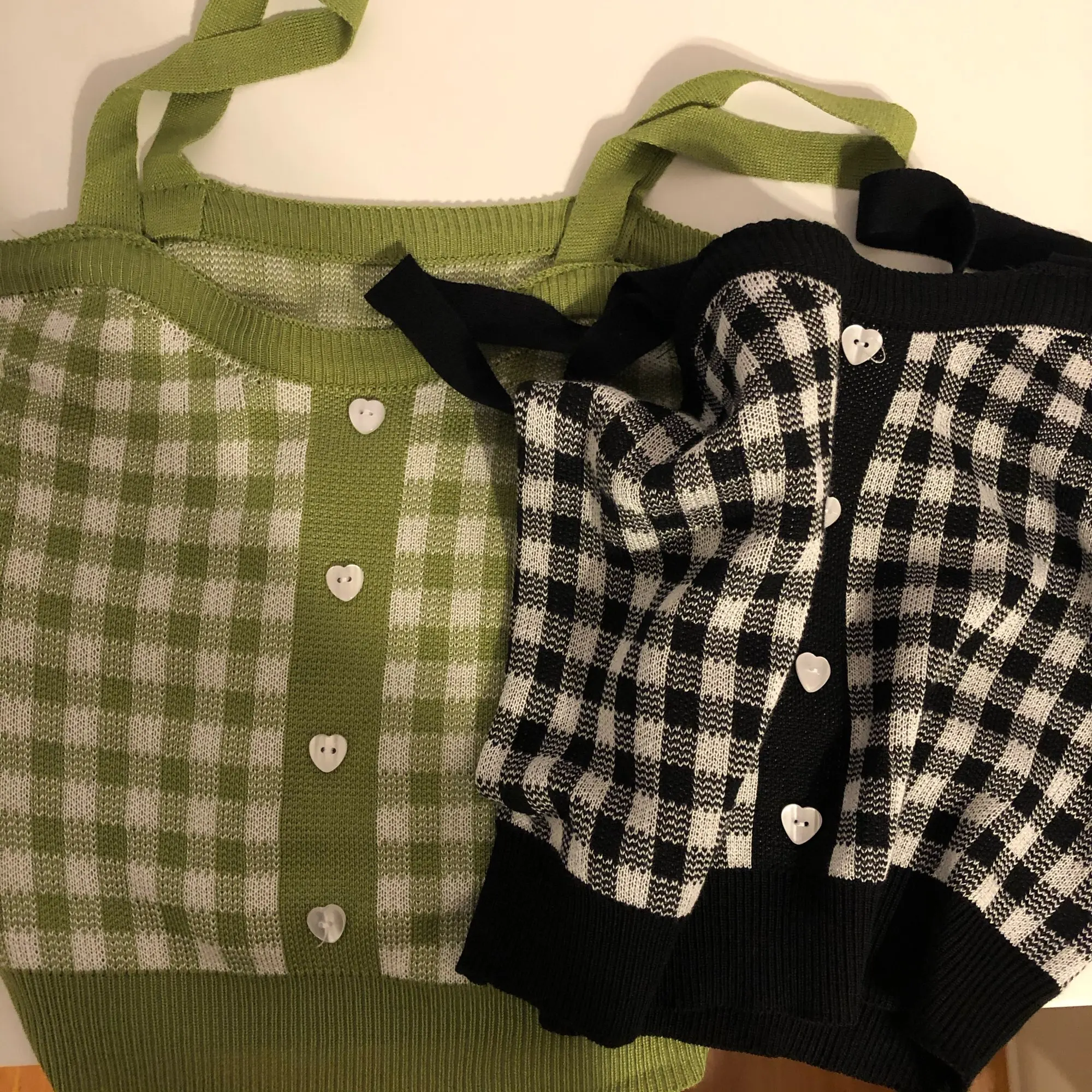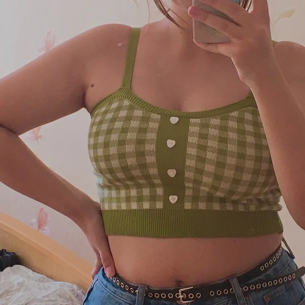Топ женский трикотажный на пуговицах и на лето, клетчатые Короткие топы