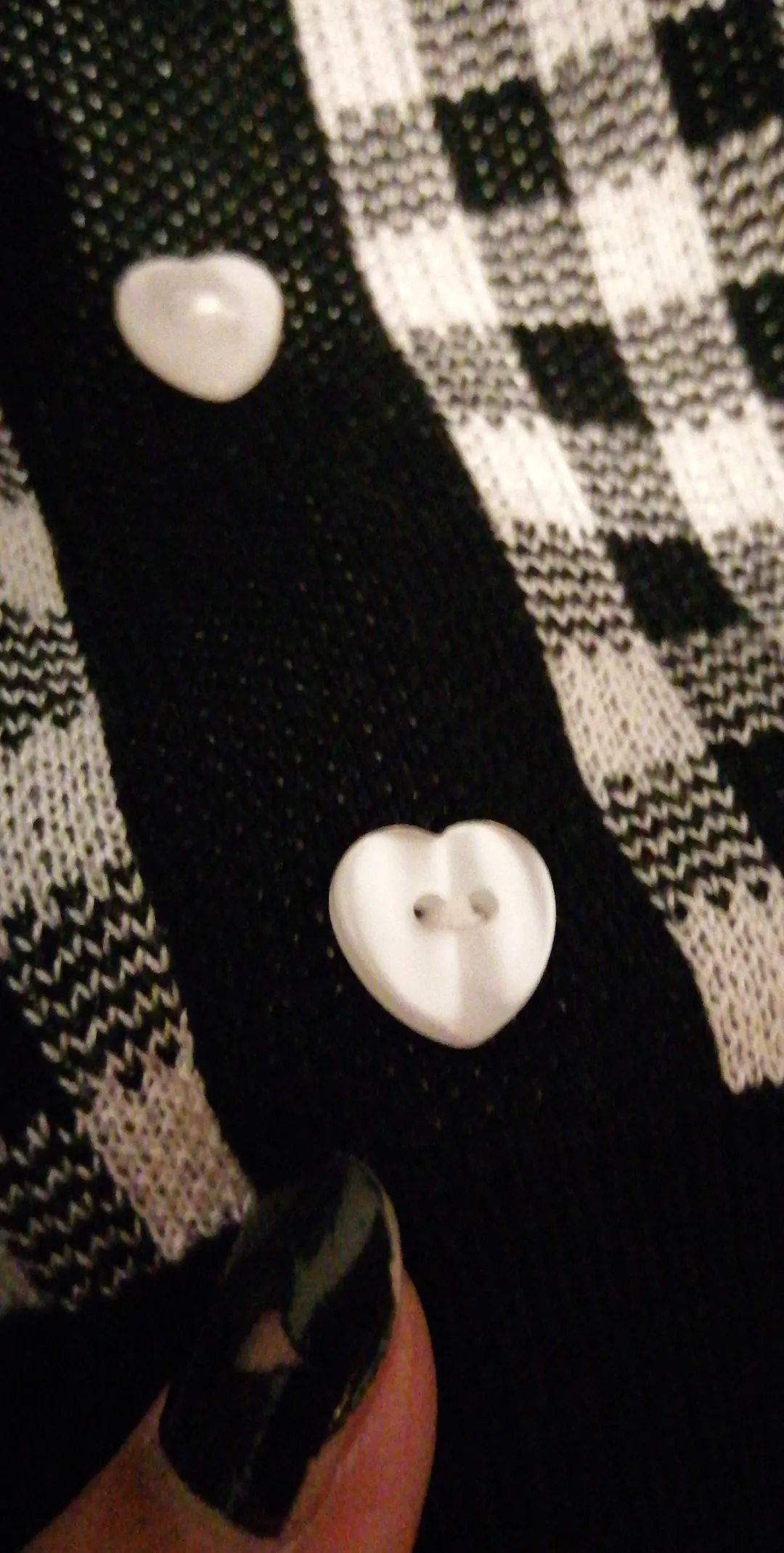 super cute and looked just like the photo! i love how the buttons are heart shaped! 10/10 :)