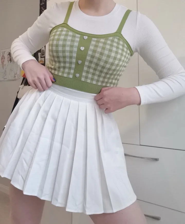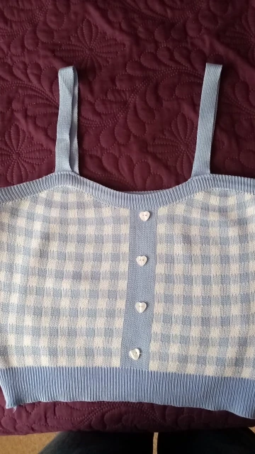 Пришло раньше. Продавец быстро отправил товар. Материал хороший и удобный, швы хорошие, и пуговицы с сердечками красиво сшиты. Заказал самый маленький размер и не такой плотный, как я хотел, поэтому я завязал на спине галстук для волос, но расслабленная посадка хорошая и эластичная (для справки, моя грудь 32A и талия 00). В целом очень мило! Спасибо!
