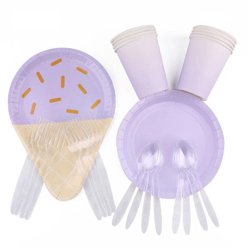 40 шт.компл. одноразовая посуда в тематике фиолетового мороженого, украшение на день рождения, тарелка для детского душа, салфетка, вилка, скатерть, товары вечерние Ринок
