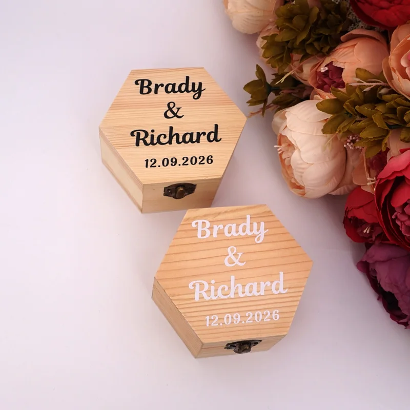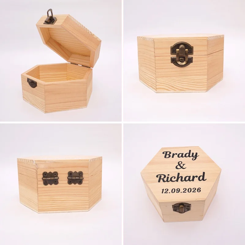 Коробка в форме Шестиугольника на заказ с именным стикером, вечерние подарочные деревянные коробки, Свадебный держатель конфет, декор для дисплея