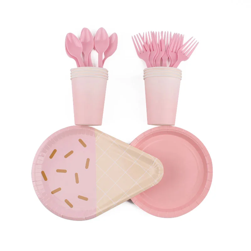 40 шт.компл. одноразовая посуда с розовым мороженым, украшение на день рождения, Детская тарелка для душа, вилки, салфетки, скатерть, товары для вечерние Ринок