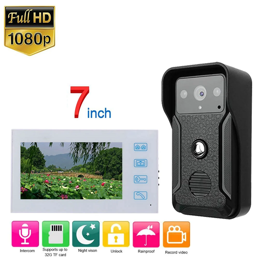 Видеодомофон, 7 дюймов, дюймовые часы с записью времени дюйма, проводной, белый, камера AHD 1080P водонепроницаемый ИК