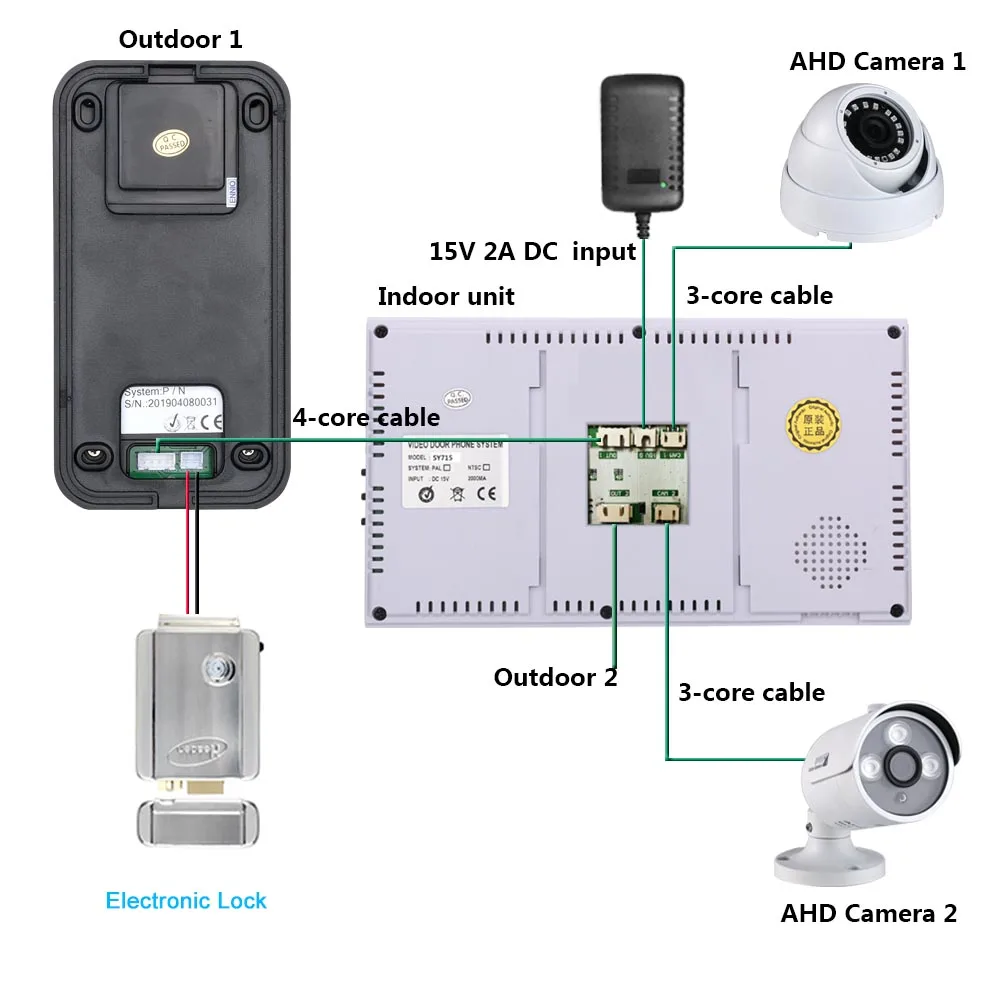 Простая установка самостоятельно с помощью адаптера и кабеля, которые мы предоставили в этом наборе, наружный блок может подключаться к внутреннему монитору с помощью проводного Кабеля 4P, затем монитор также может записывать видео или открывать дверь и т. д. Широко используется для вилл, квартир, домов, отелей, офисов, общественных зданий и так далее.