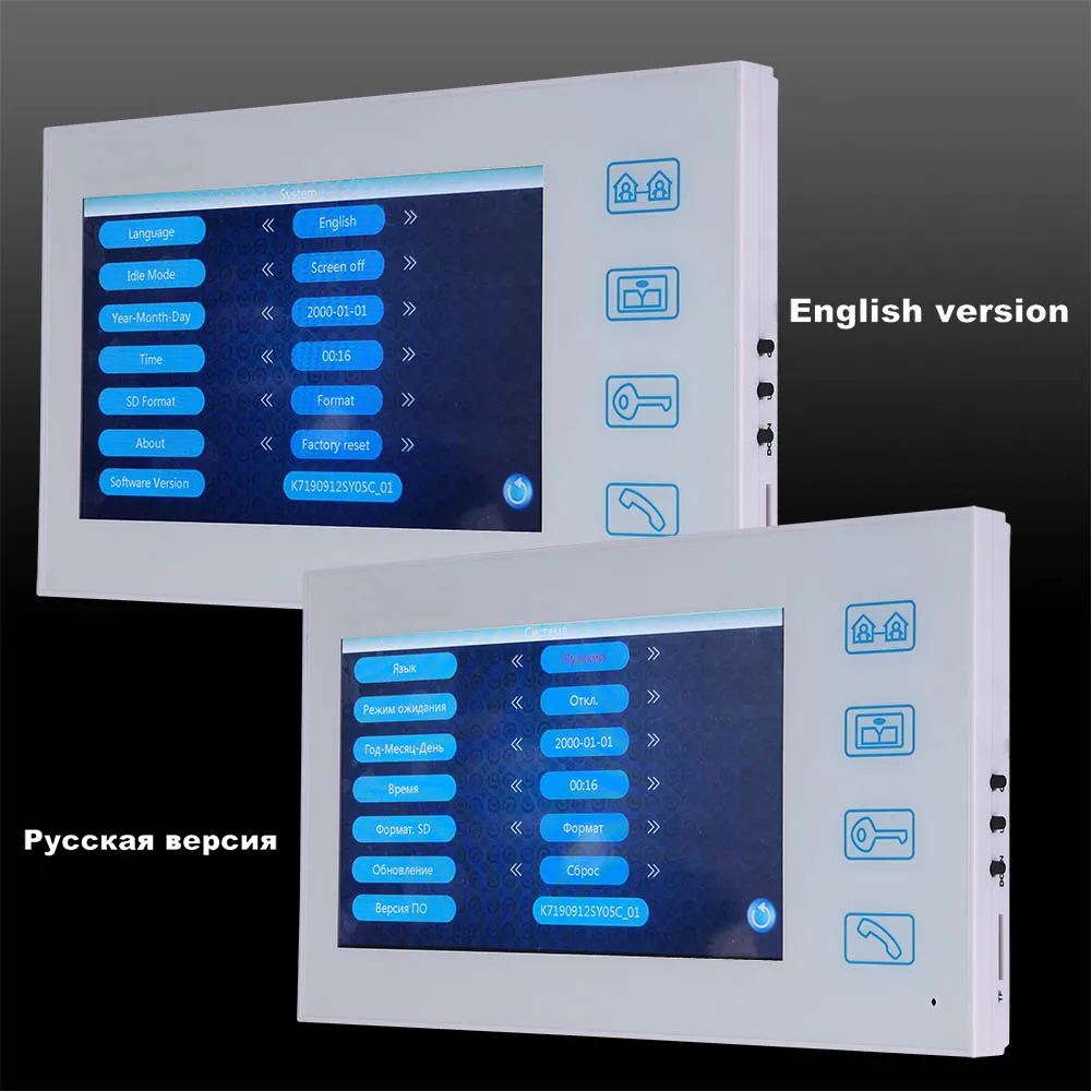 Регулировка кольца/громкости/AHD 1080P камера подключена/камера дверного звонка/предварительный просмотр камеры видеонаблюдения/китайский/английский/русский Язык опционально