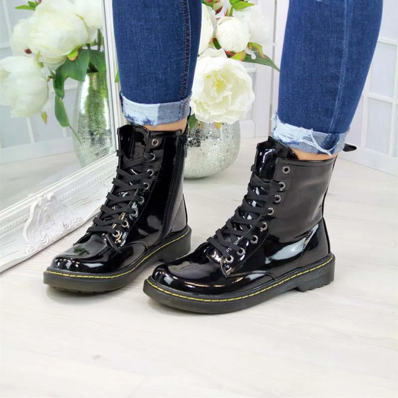 Женские армейские сапоги на высокой платформе, черные кожаные сапог...