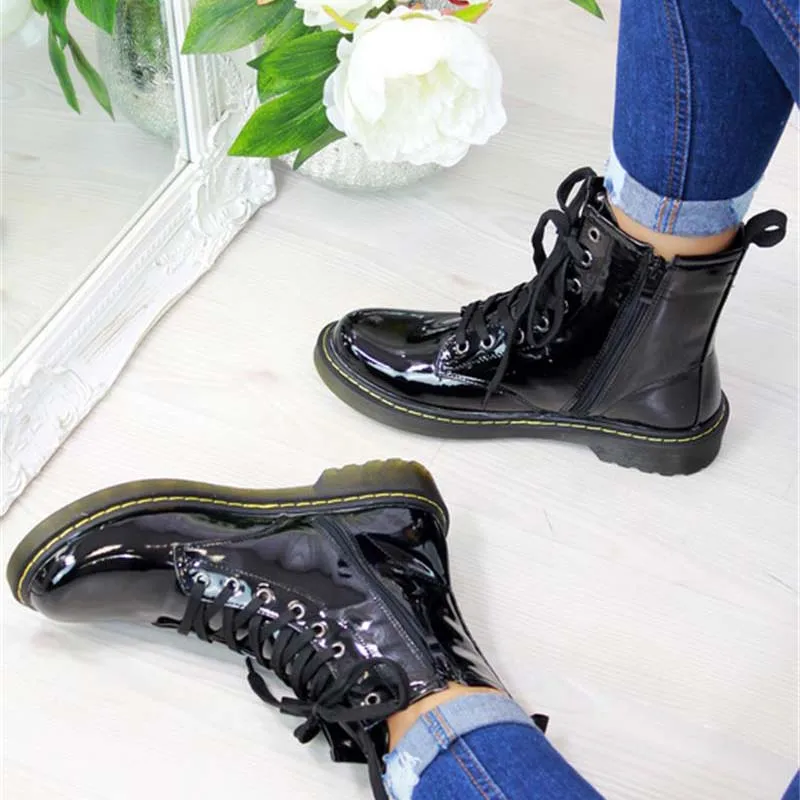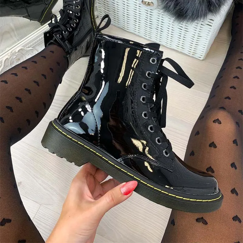 Ботинки мартинсы женские на толстой подошве, с молнией сбоку, на шн...