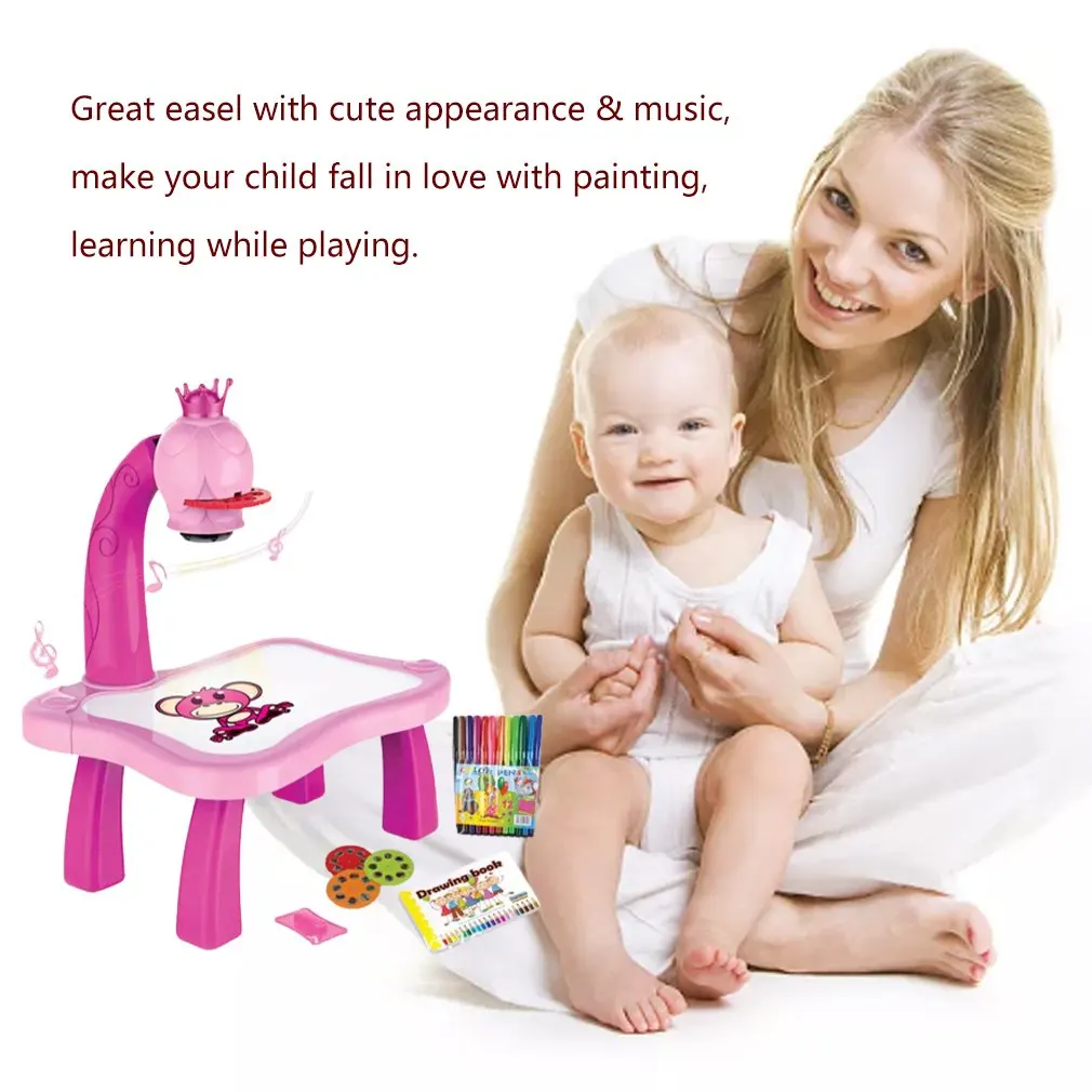 Обучающий стол со смарт-проектором, детский стол для рисования, игрушка со светящейся музыкой