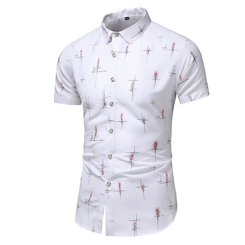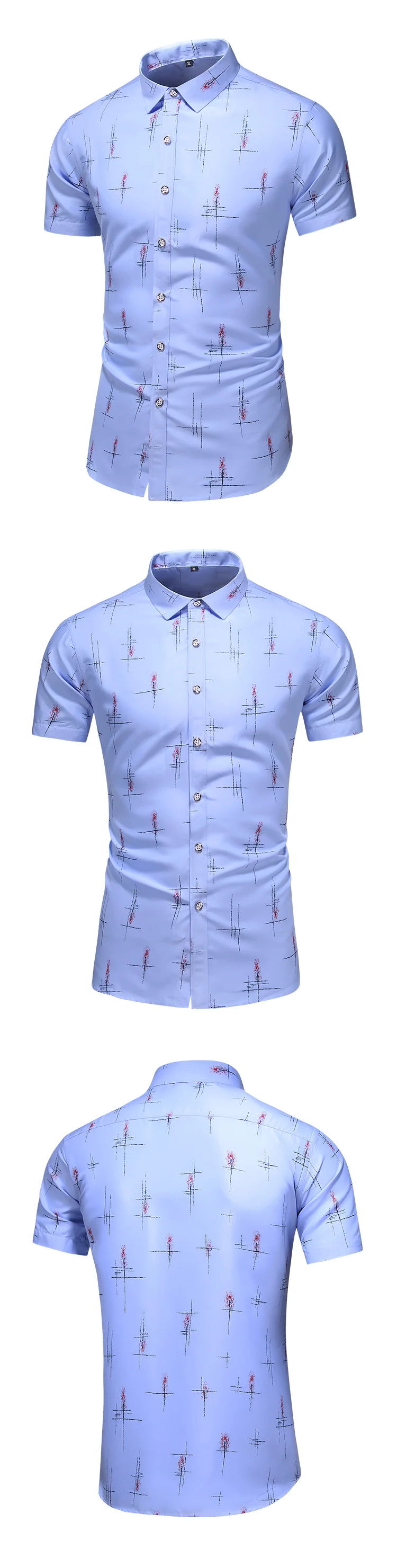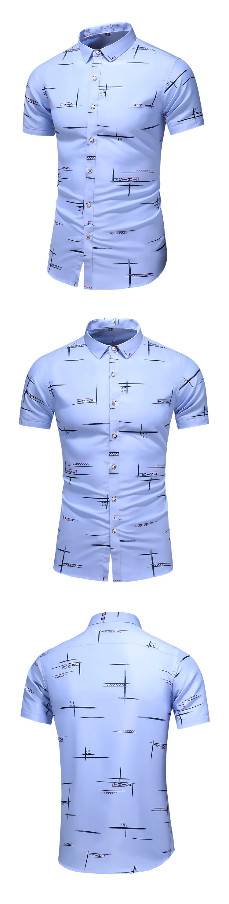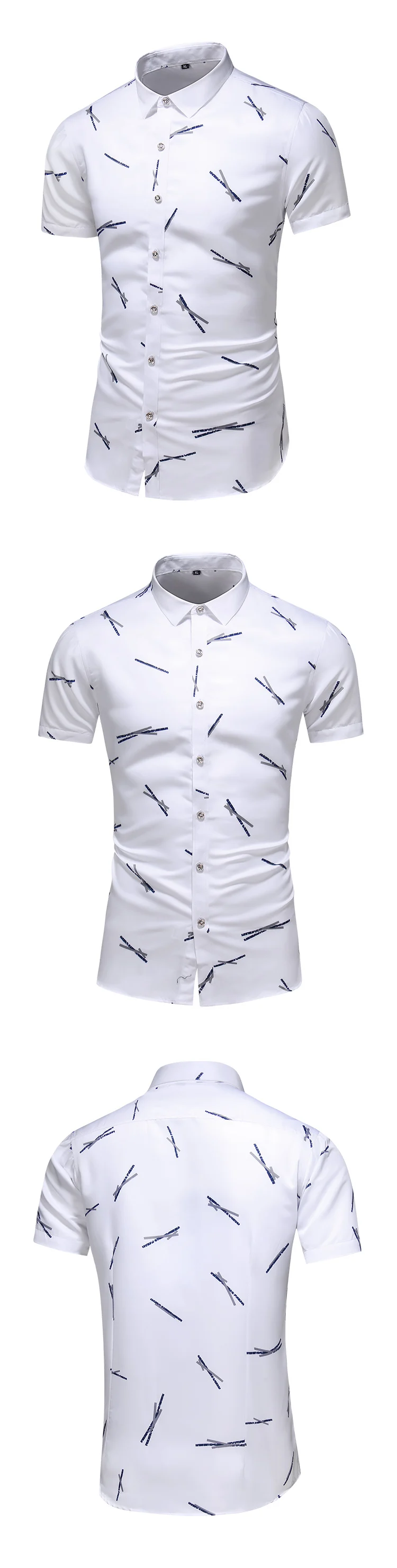 Рубашка мужская с коротким рукавом, деловая Повседневная сорочка с принтом, цвет белыйсиний, облегающая Классическая, разные цвета, модель 7XL на лето