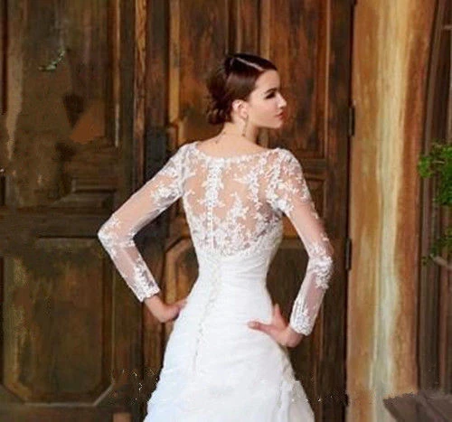 Кружевное болеро с длинным рукавом, свадебное болеро с глубоким вырезом для свадьбы, вечеринки, выпускного вечера, дешево, жакет для невесты цвета слоновой кости, болеро на заказ