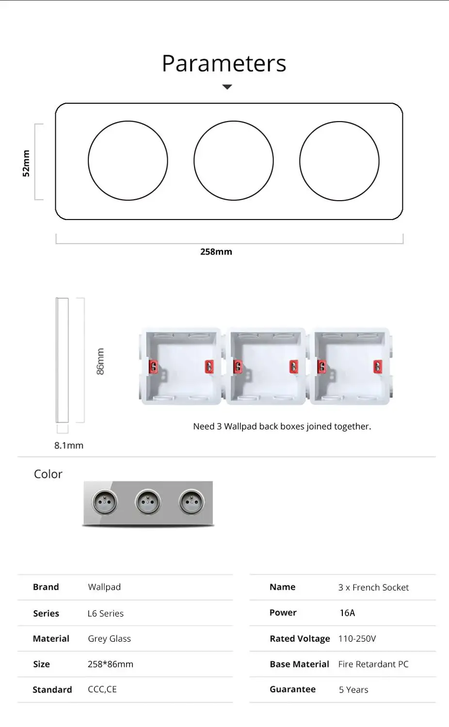 Wallpad L6 3 Gang Тройная рамка французская настенная электрическая...