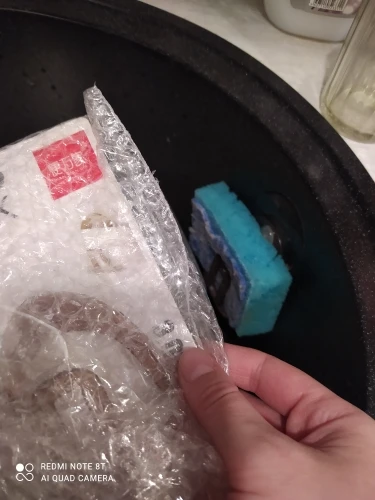 Он отлично выполняет свою функцию. Тем не менее, он довольно узкий и не подходит для звезды с губками типа Spontex, если вы не сжимаете его при надевании.