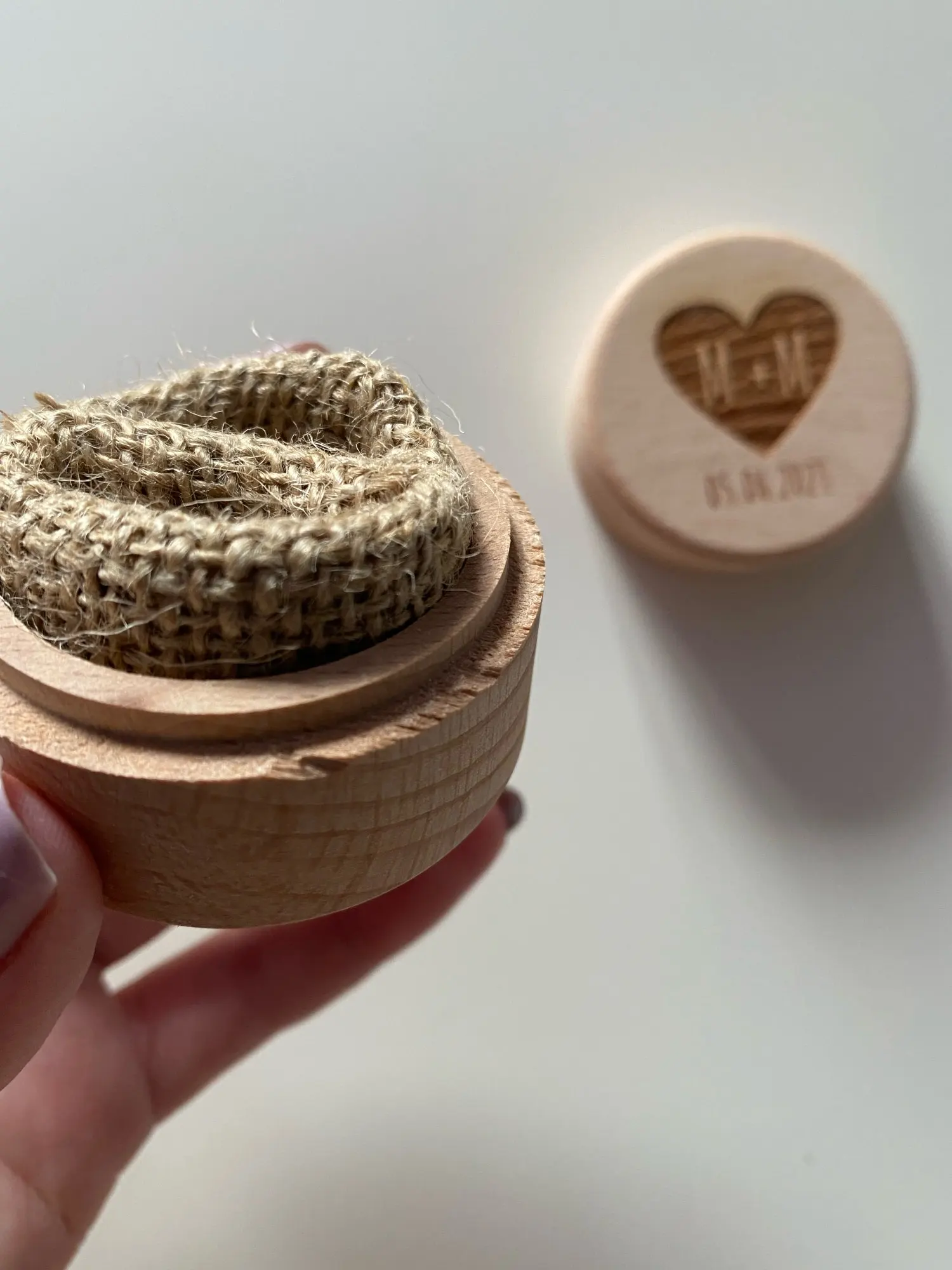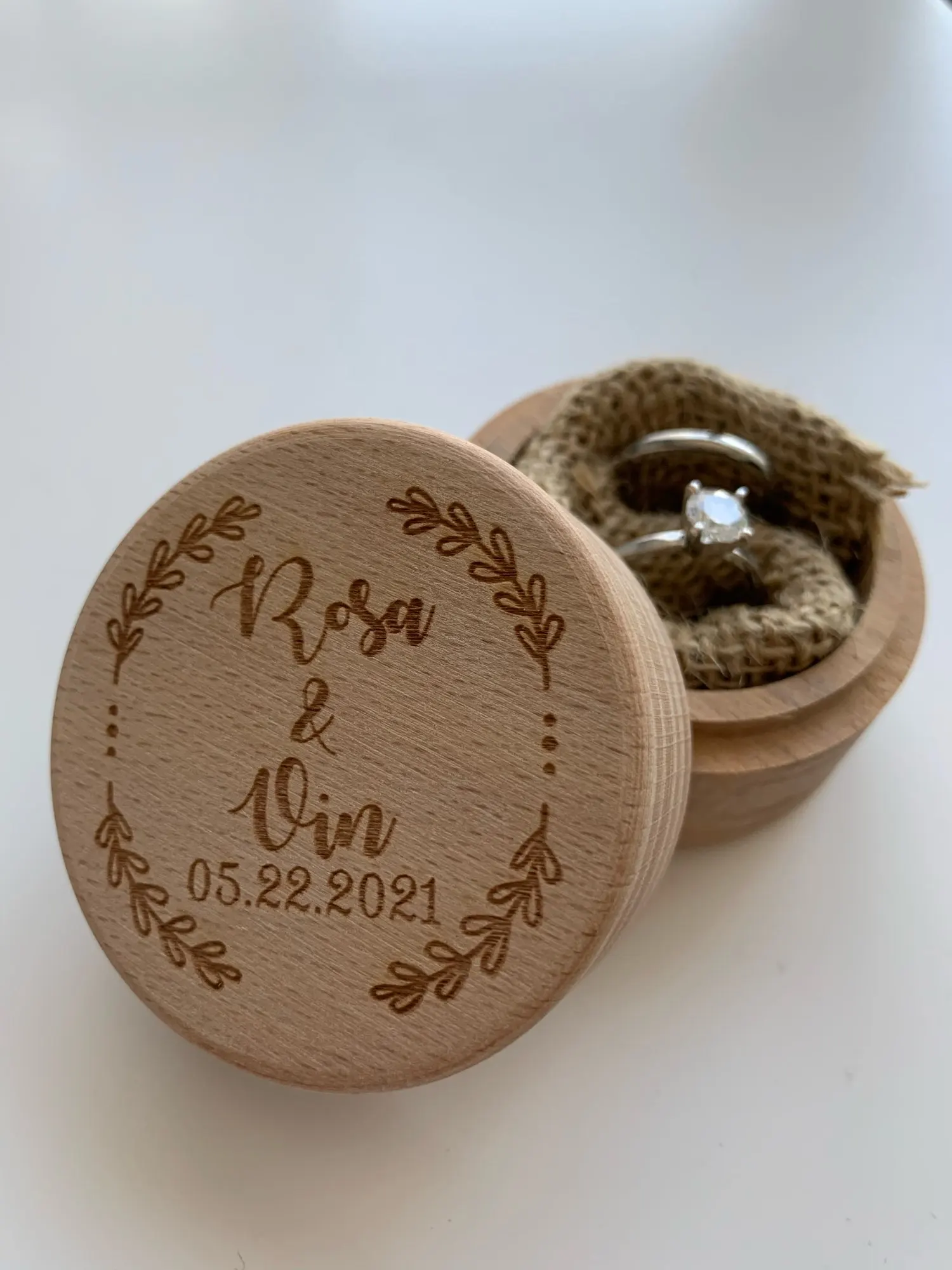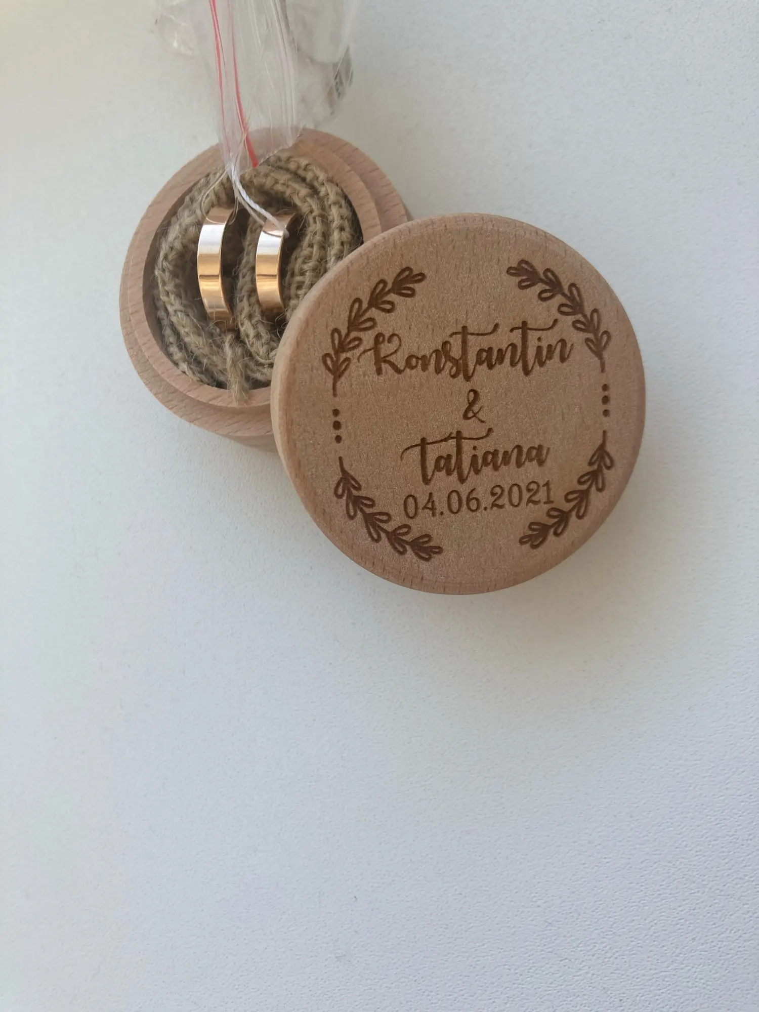 Деревянная коробка для колец в деревенском стиле с именем и датой