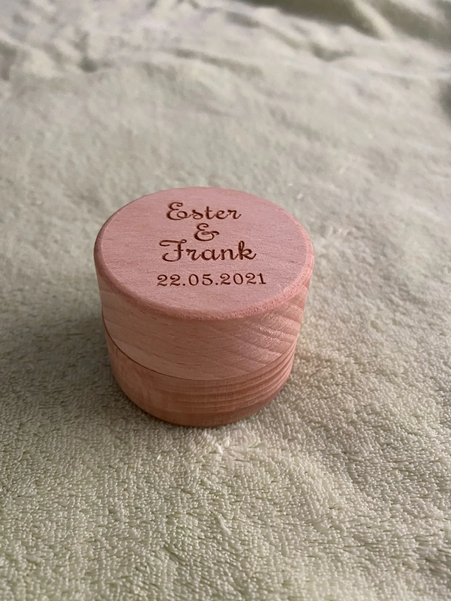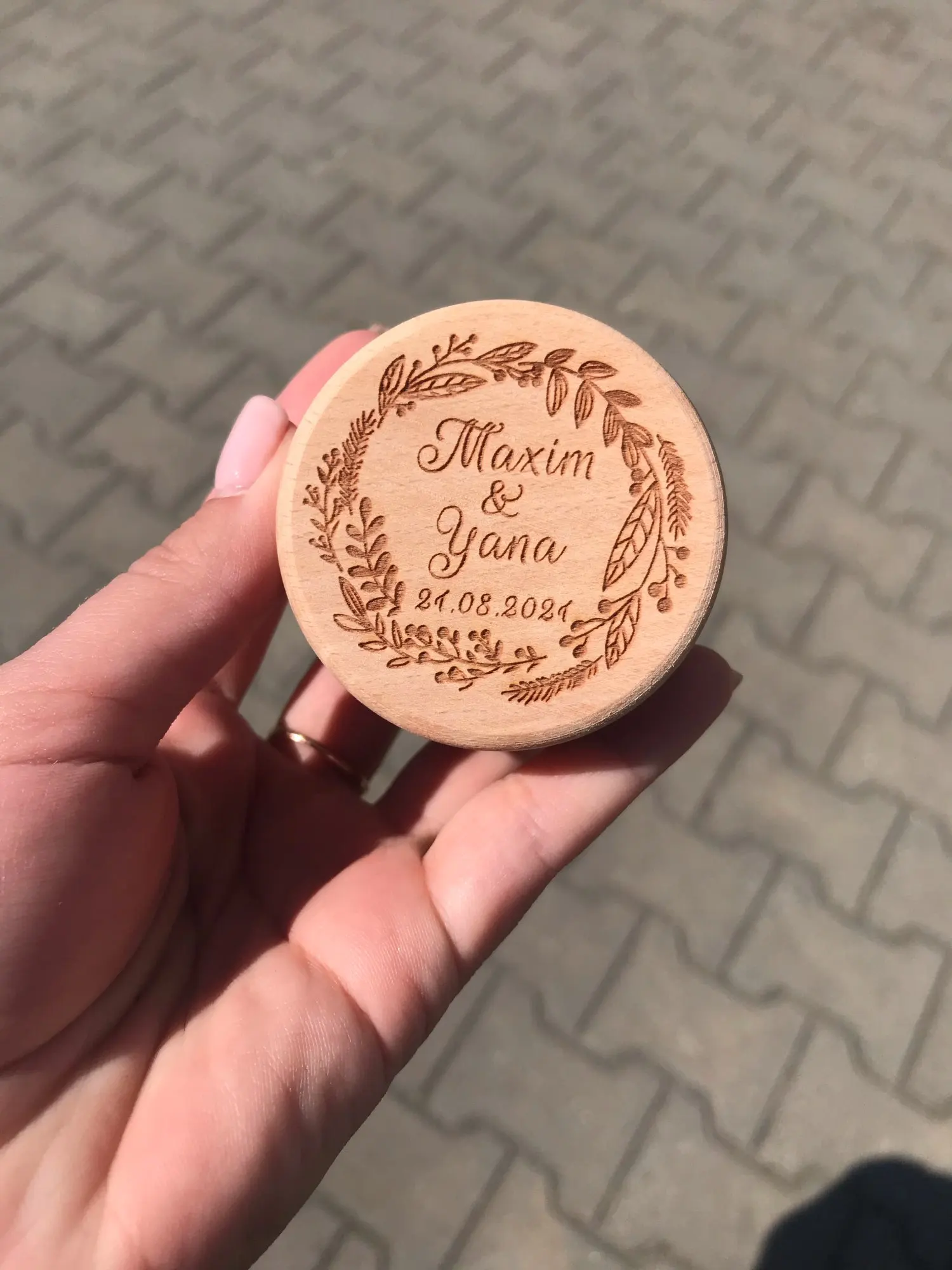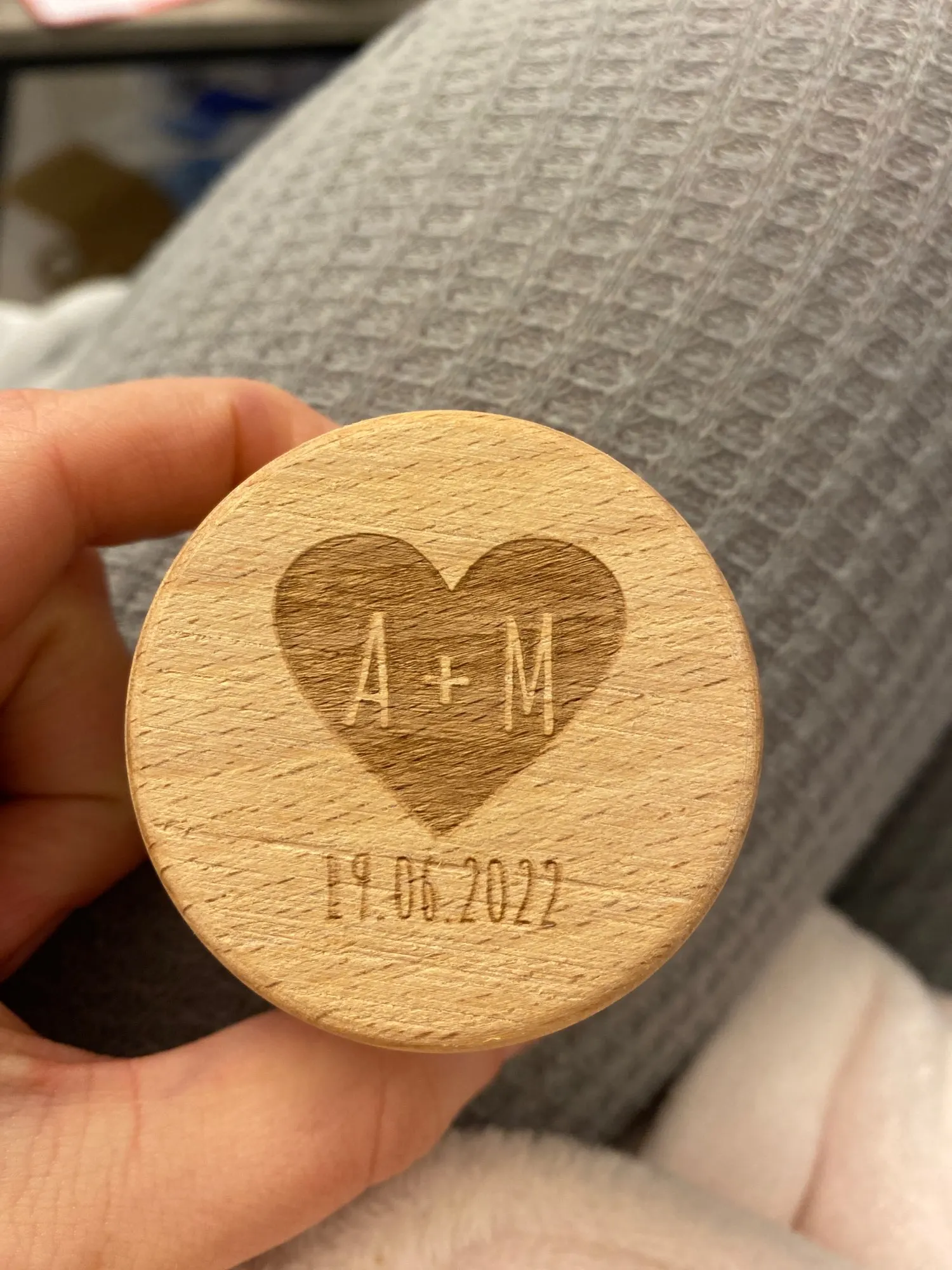 Деревянная коробка для колец в деревенском стиле с именем и датой