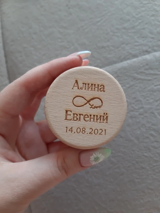 Очень красивая и индивидуальная коробочка вышла))), продавец отзывчивый, даже согласовывает дизайн надписи и показывает макет (на русском к сожалению всего один вид шрифта имеется, но на английском очень много красивых), доставка быстрая, сама коробочка была очень хорошо упакована (в несколько слоев пупырчатой обертки) Заказом очень довольна! Продавца рекомендую!