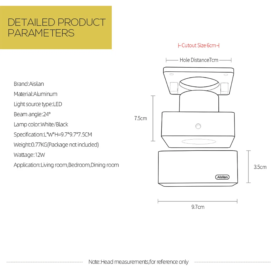 Aisilan светодиодный ультра-тонкий поверхностный монтируемый вниз светильник, без основного светильника, потолочный Точечный светильник, квадратный встраиваемый светильник для гостиной, спальни споты потолочные