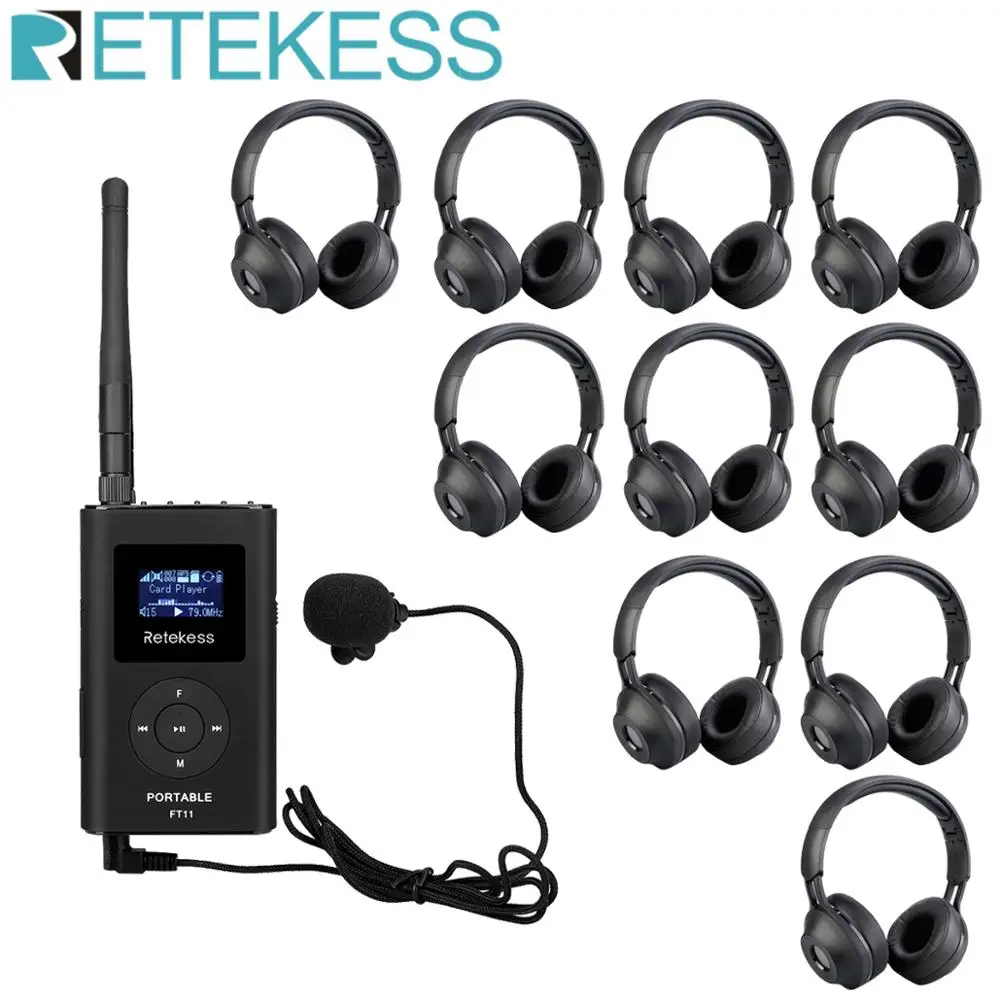 Retekess 0,3 Вт fm-передатчик FT11 + 10 шт. наушники TR101 MP3 вещательный радиопередатчик для встречи в церкви гид система