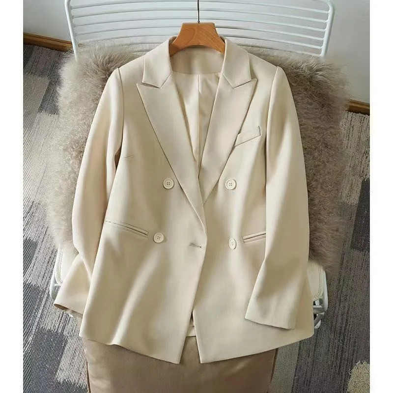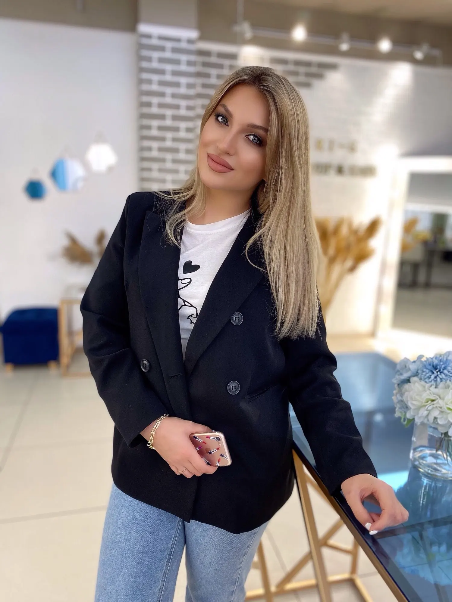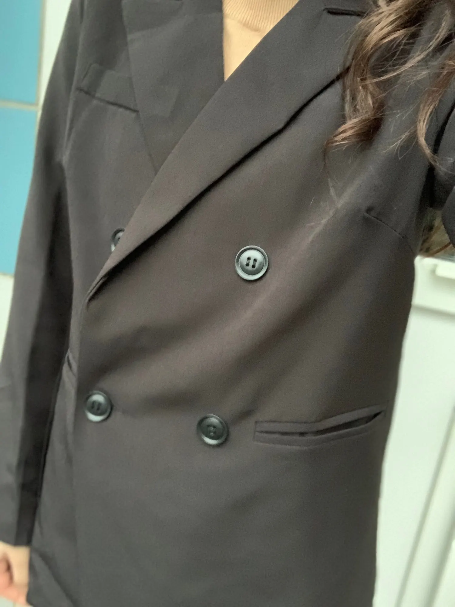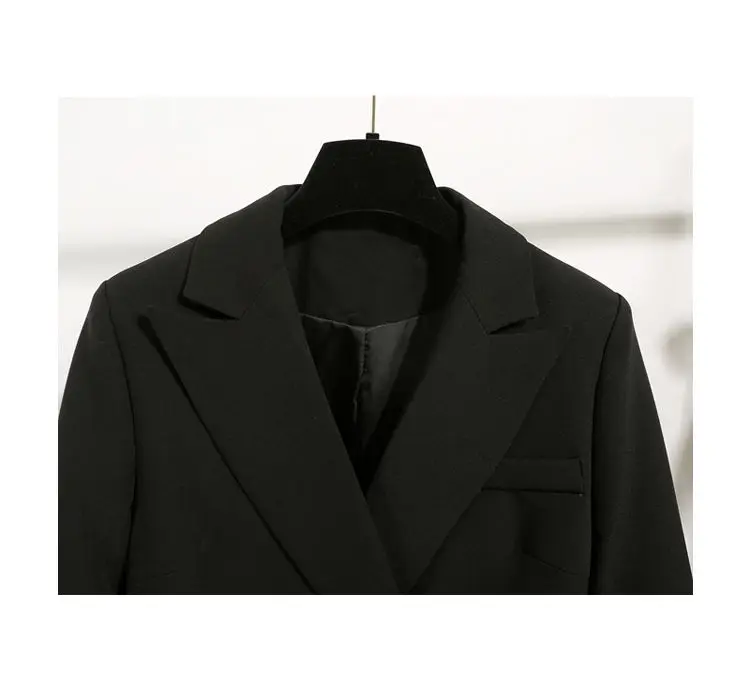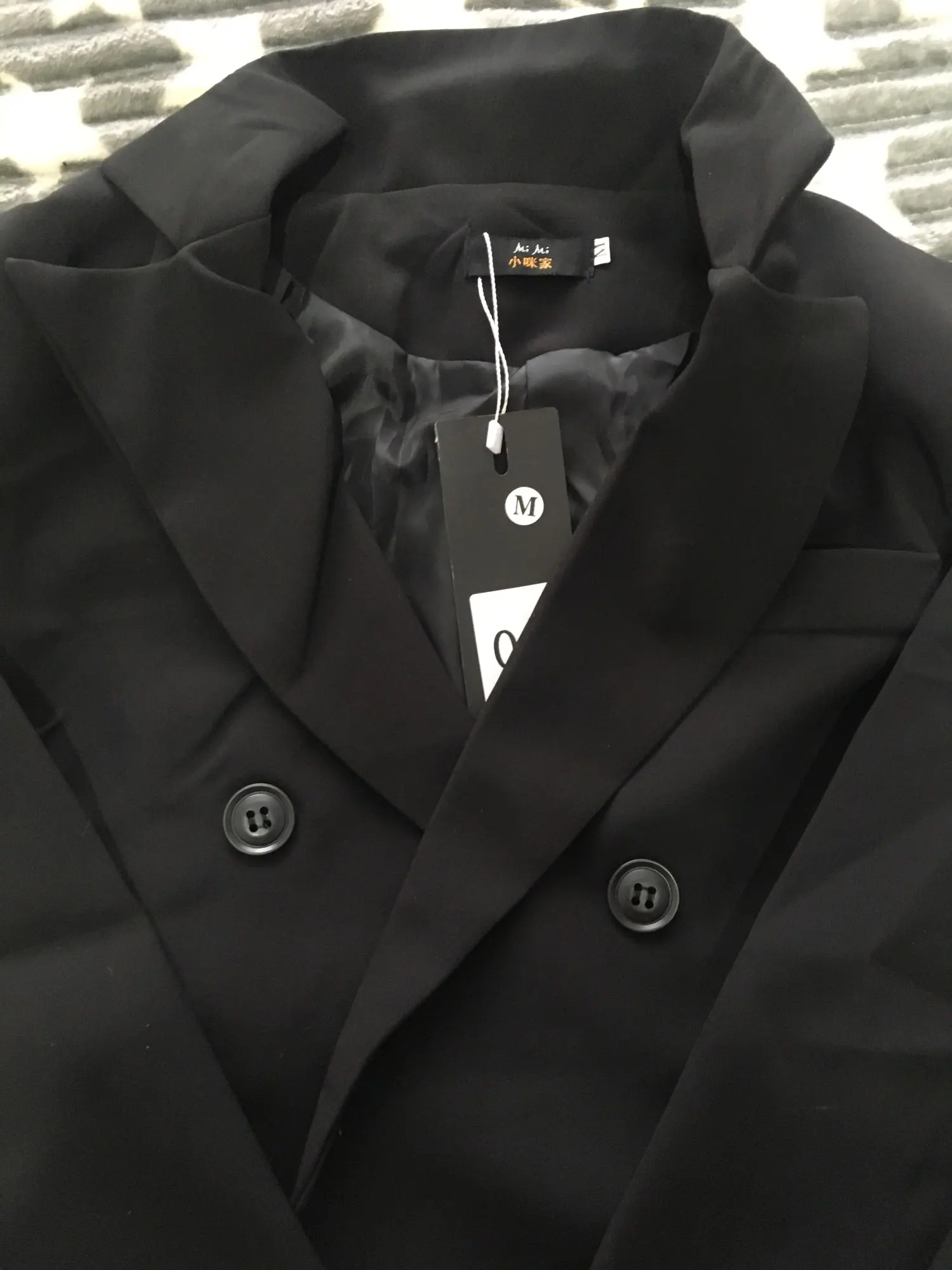 Женский двубортный пиджак, Осенний Свободный Повседневный блейзер с длинным рукавом, черного цвета