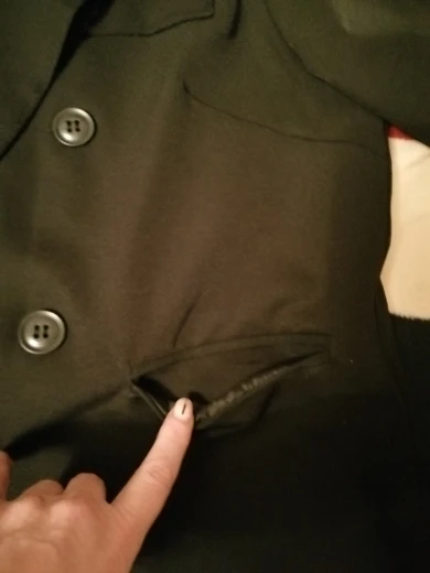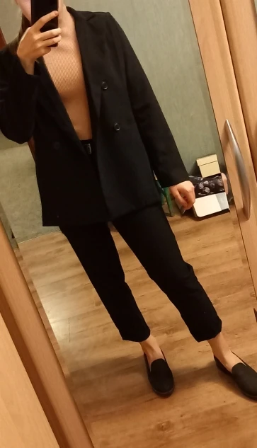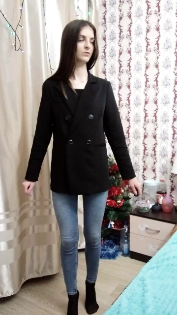 Я так долго искала классический чёрный пиджак в магазинах, но всё было не то. Решила поискать здесь и, О ЧУДО, вот он классический чёрный пиджак! Если вам понравилось, берите его! Качество на высоте) Цвет как и на фотографиях, абсолютно чёрный. Без торчащих ниток и кривых швов! Жаль только, что одна пуговица в свободном полёте, но я буду закалывать две стороны внутри, что пиджак был закрыт плотнее. А, и ещё, пиджак прислали очень быстро)