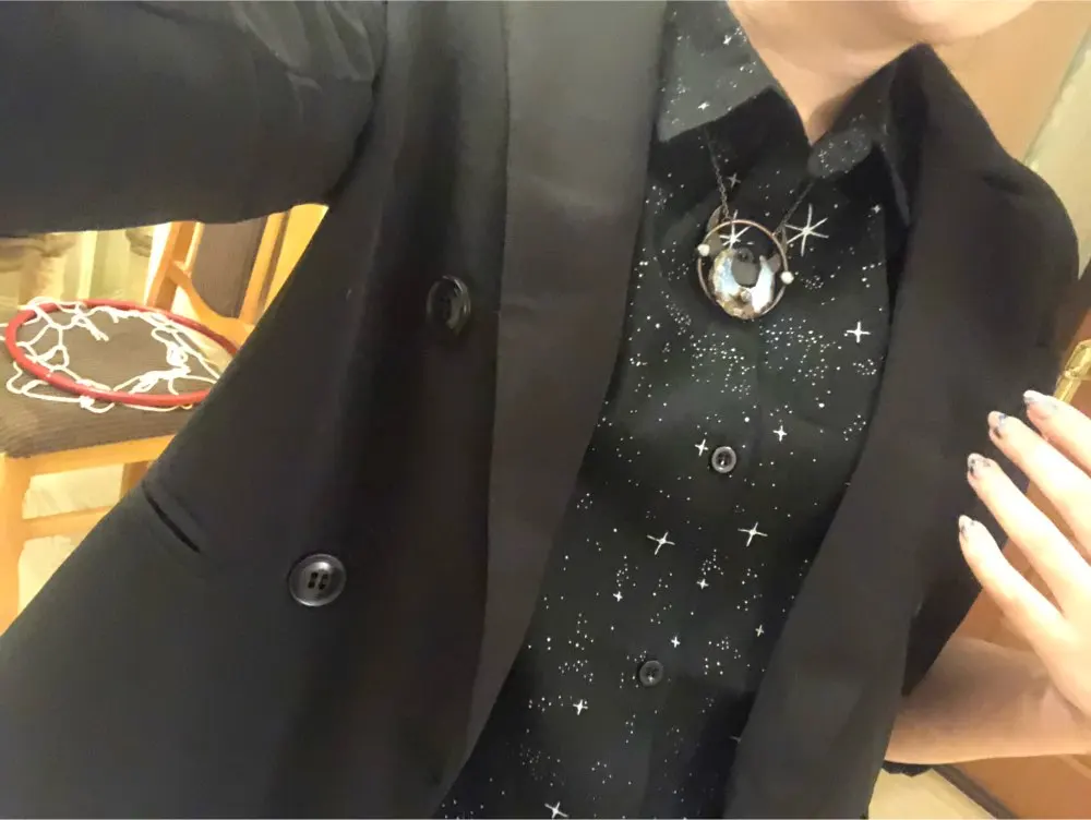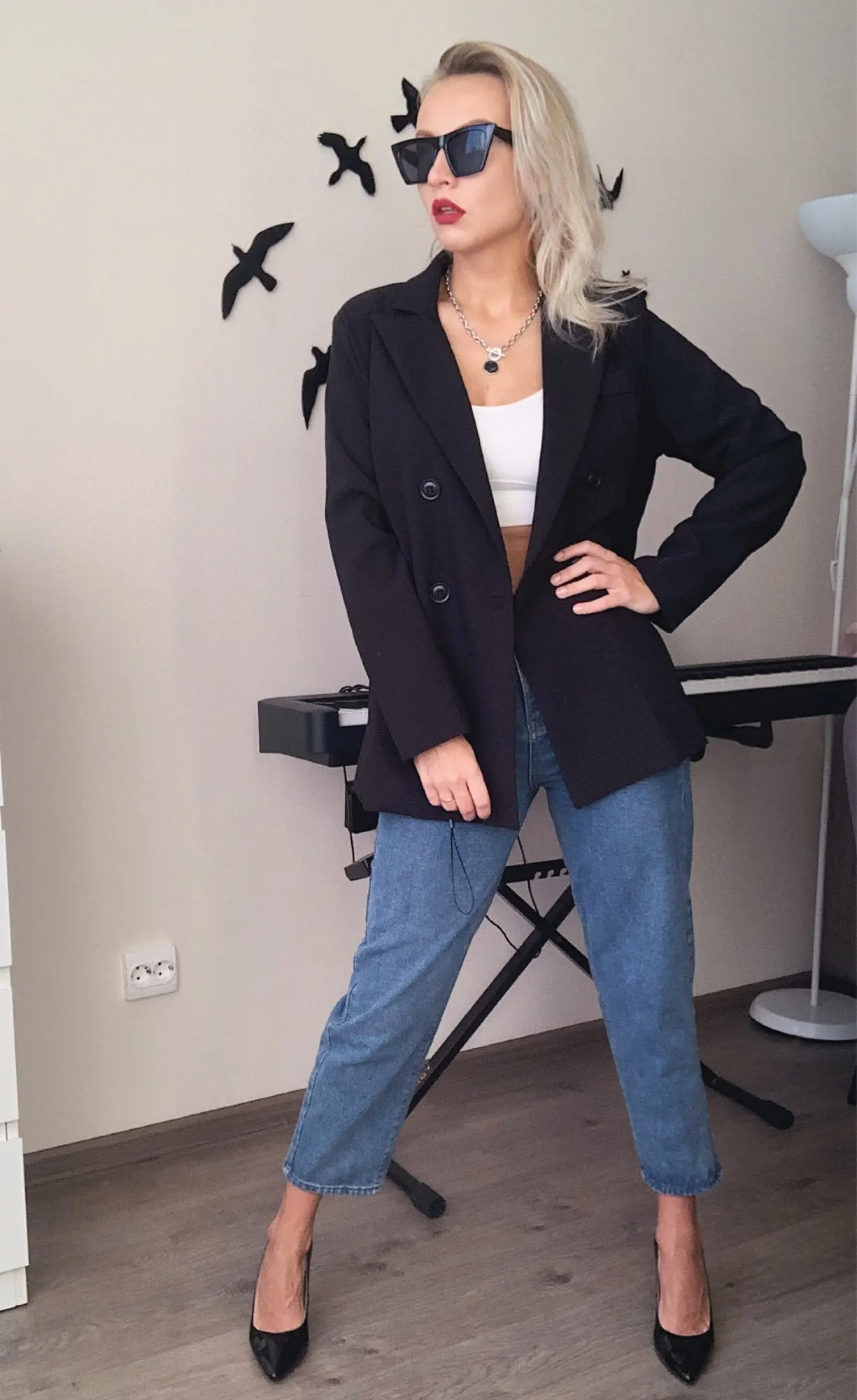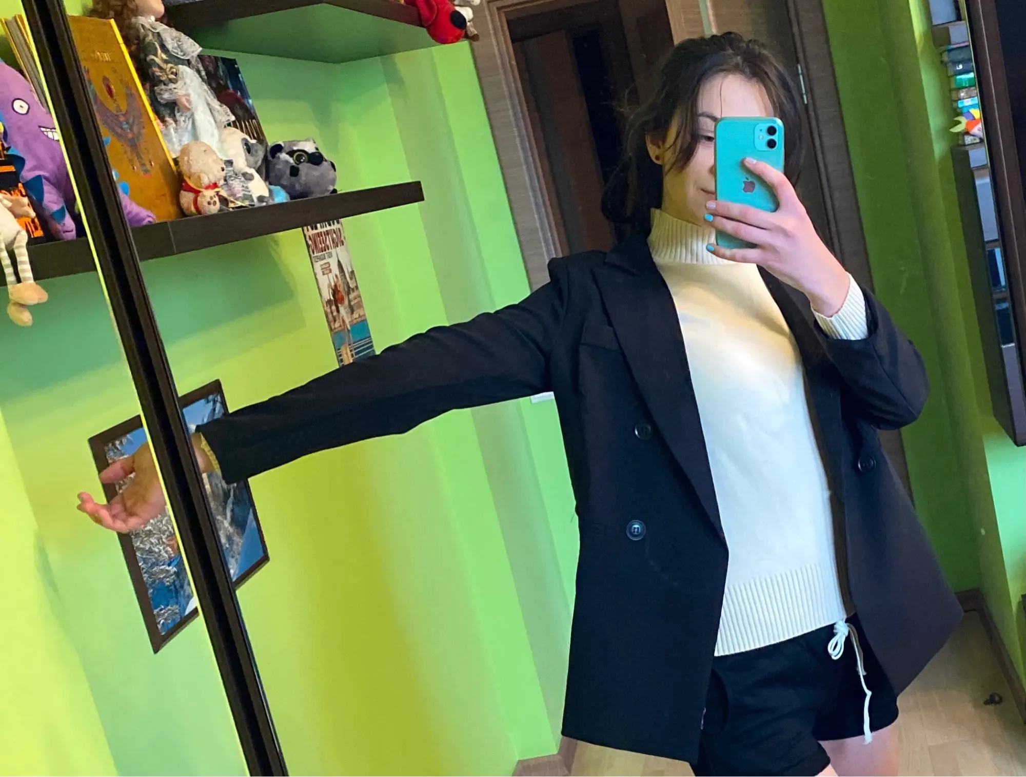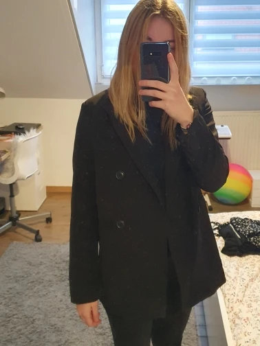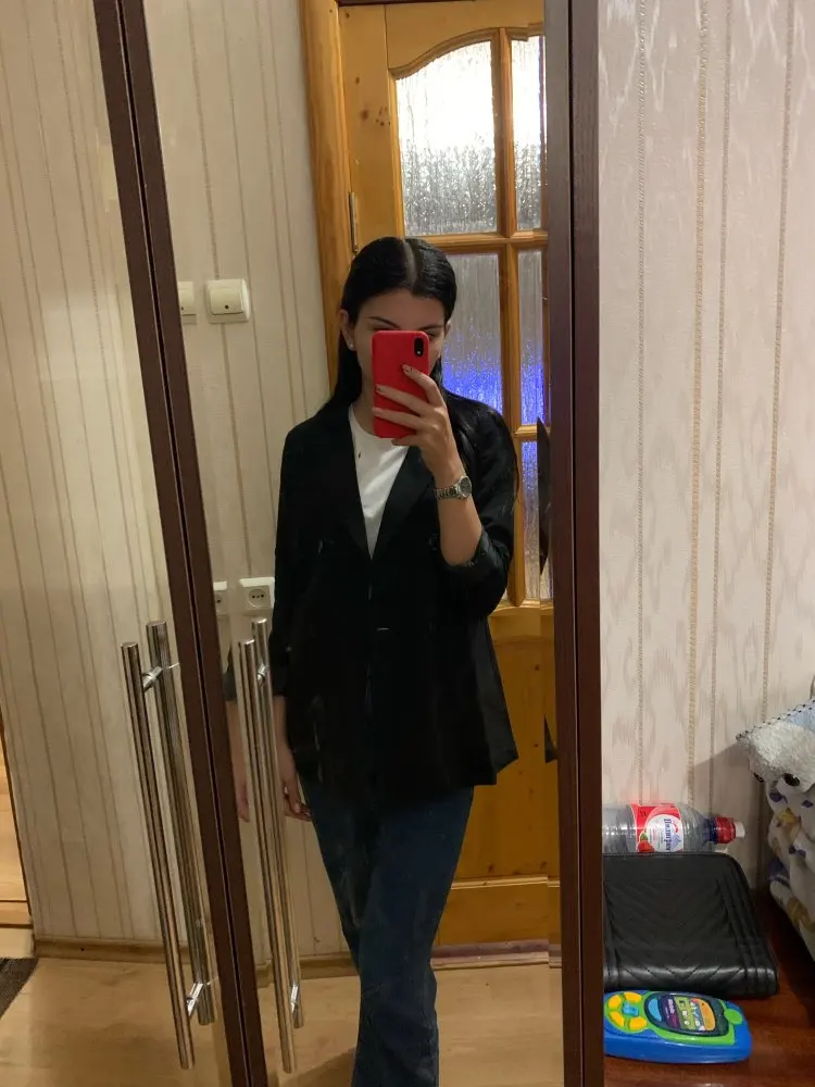Пиджак хороший. Брала по размерной сетке на 2 размера больше своего, чтобы был оверсайз. Надо было брать на 3 размера больше)). Он тонкий, но форму держит. Хороший чёрный цвет, не блестит дешевизной. Дошёл быстро