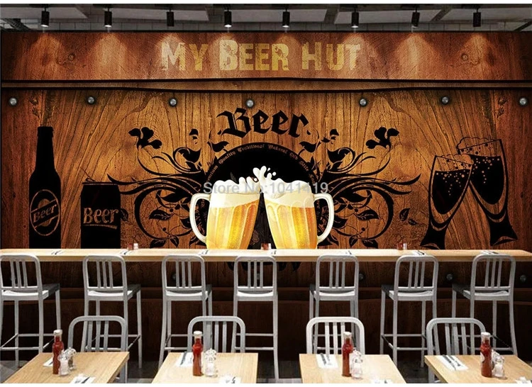 Европейский стиль ретро обои 3D деревянная доска пивная фотография настенные фрески для ресторана кафе фон Декор стены Papel де Parede Фреска
