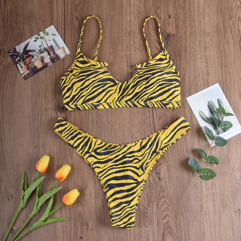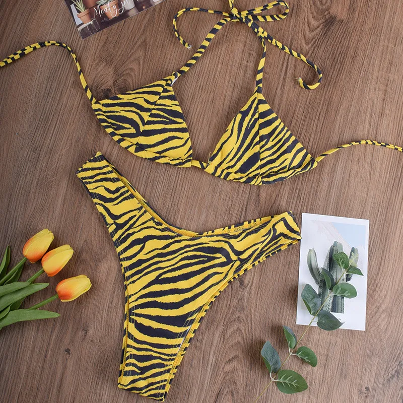 BeAvant Желтый леопардовый треугольный комплект бикини для женщин 2020 стринги с высоким вырезом пуш-ап сексуальный купальник женский летний Бразильский купальный костюм