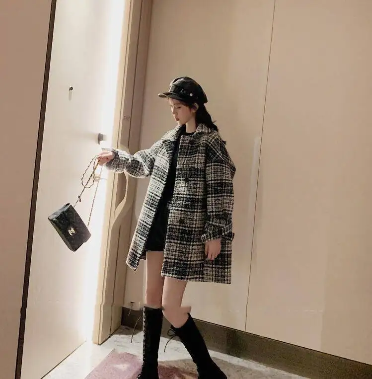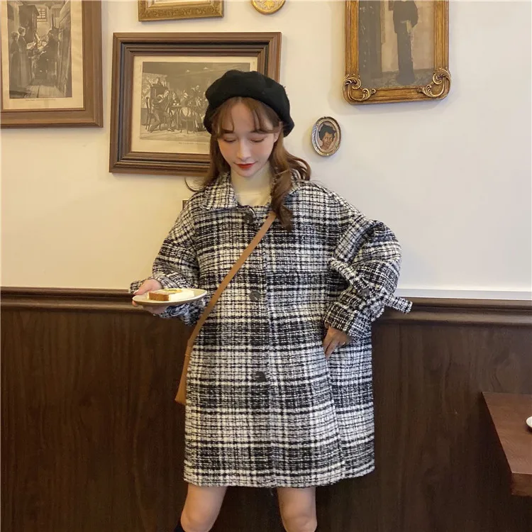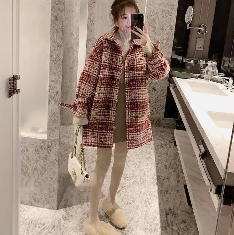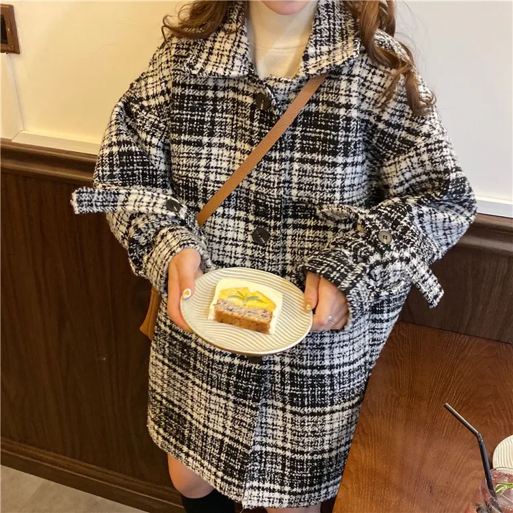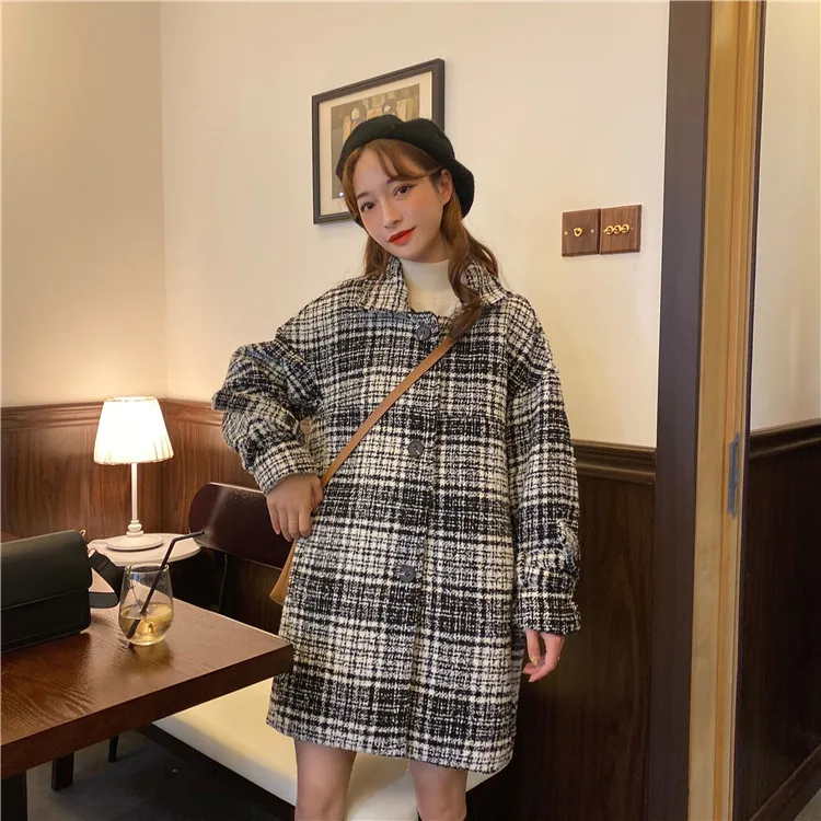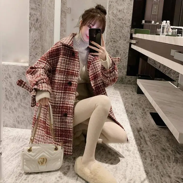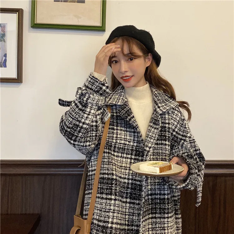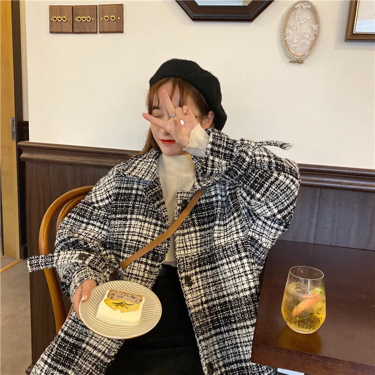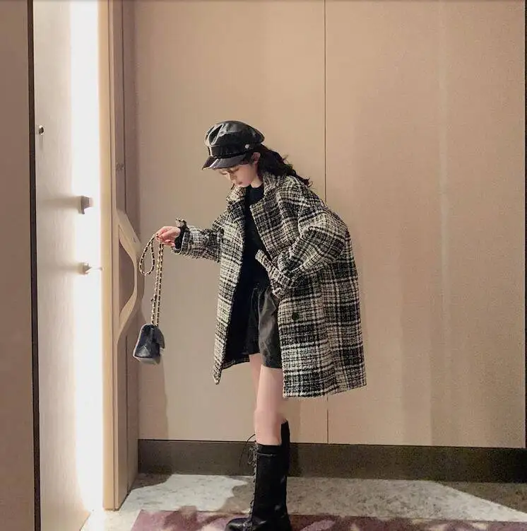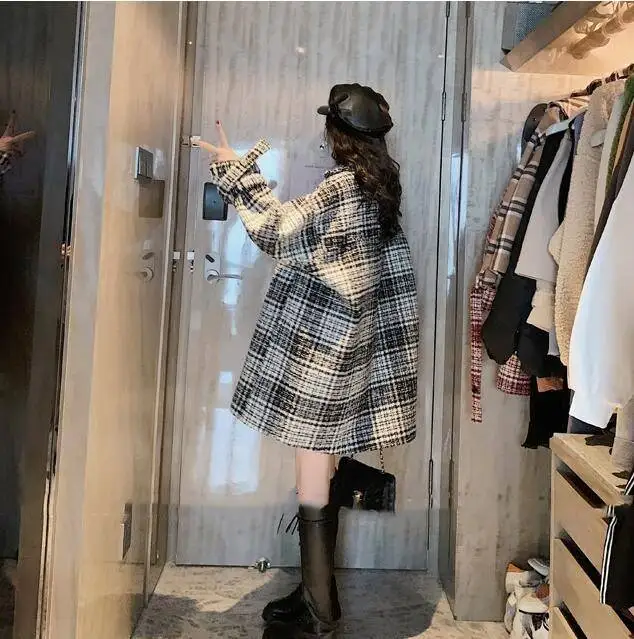 Женское шерстяное пальто Bella philosophy, зеленое Свободное пальто средней длины в клетку, уличная одежда для зимы, 2020