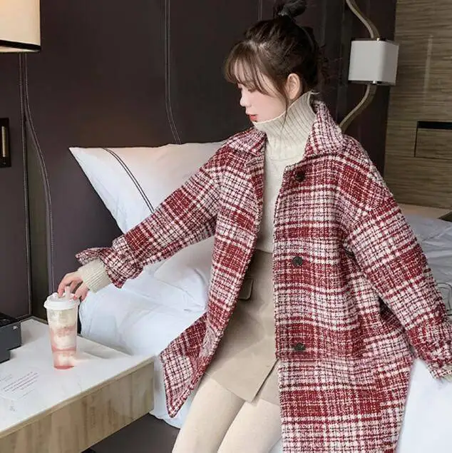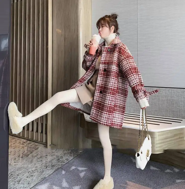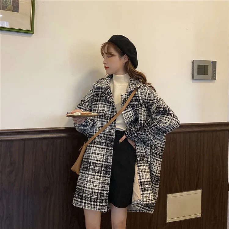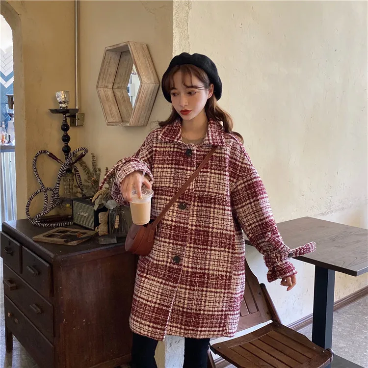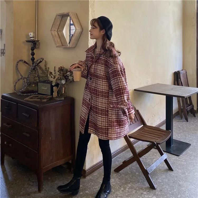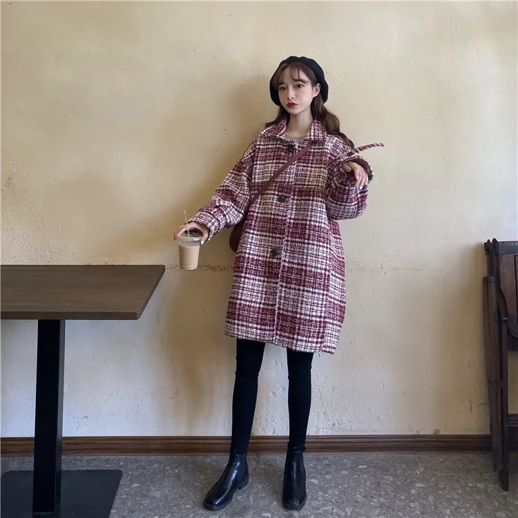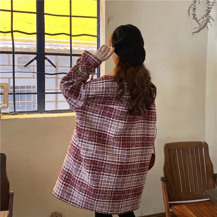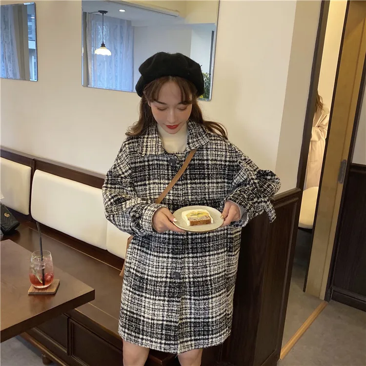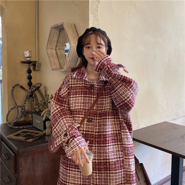 Женское шерстяное пальто Bella philosophy, зеленое Свободное пальто средней длины в клетку, уличная одежда для зимы, 2020