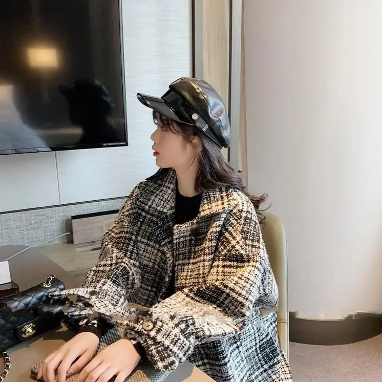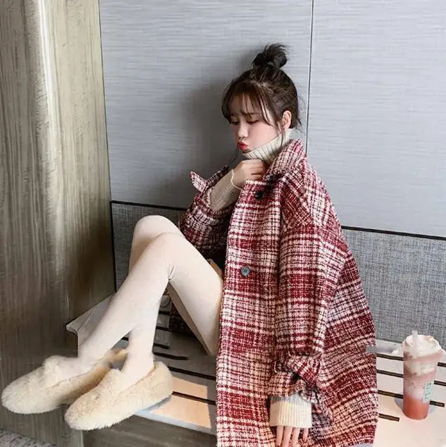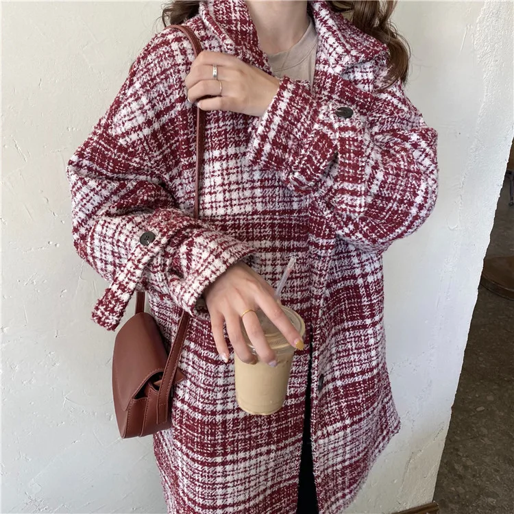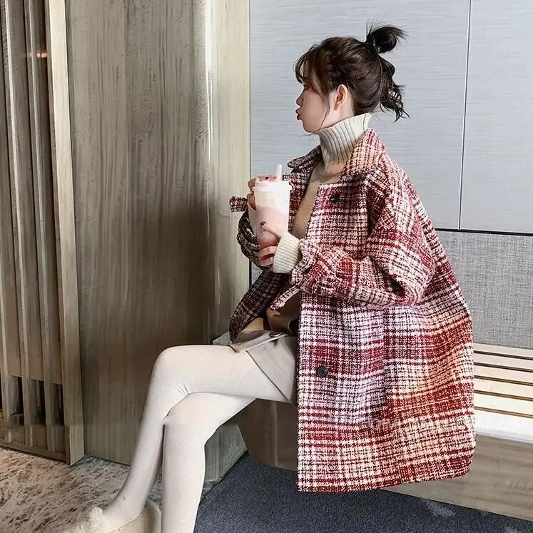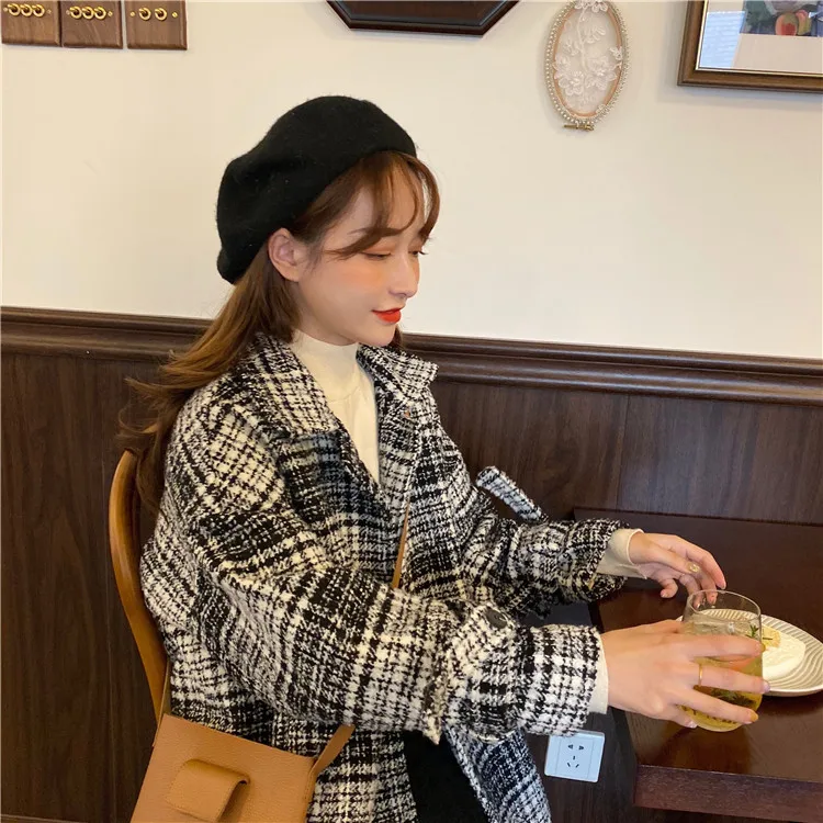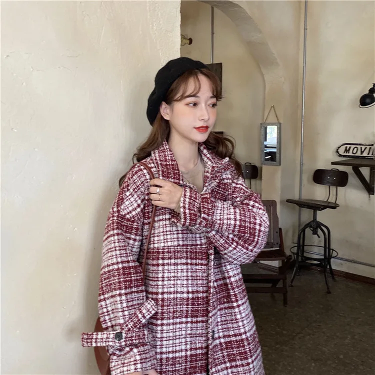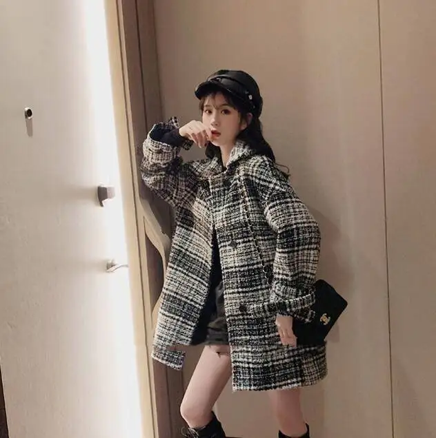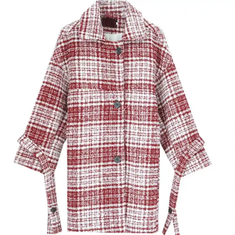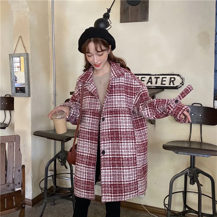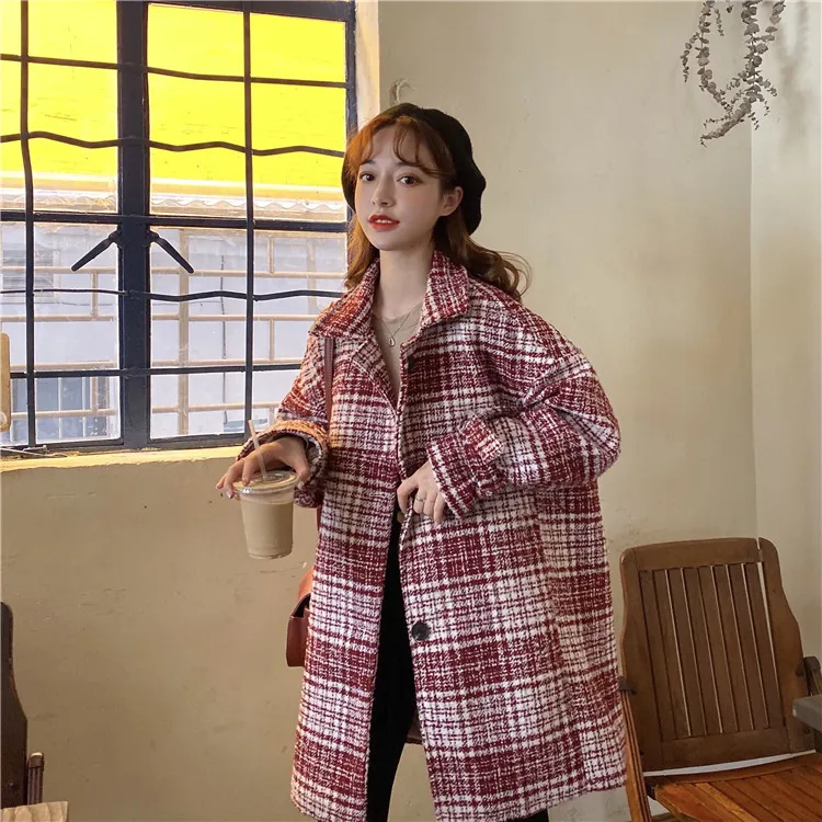 Женское шерстяное пальто Bella philosophy, зеленое Свободное пальто средней длины в клетку, уличная одежда для зимы, 2020
