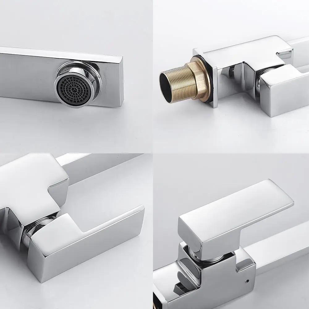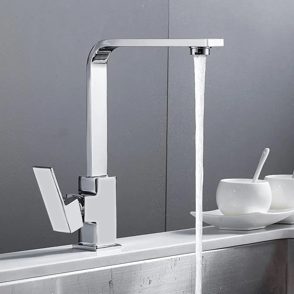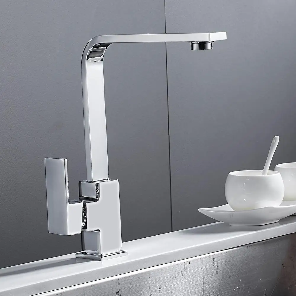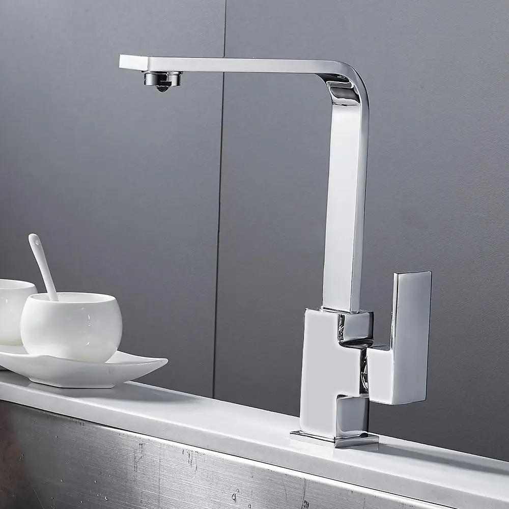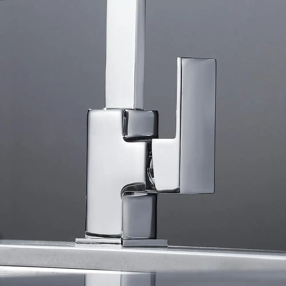 Хромированный квадратный смеситель для кухни, современный фильтр для раковины, моноблок, однорычажный смеситель для холодной и горячей латуни, поворотный излив, смеситель