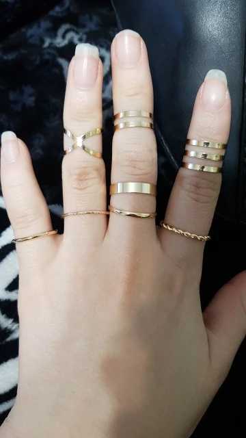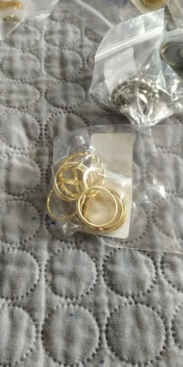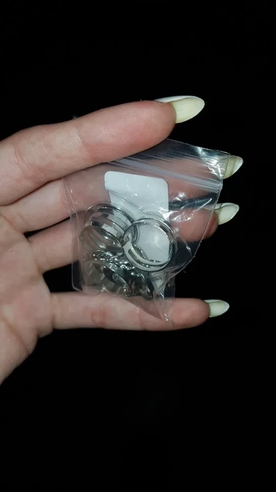 По размеру подошло только 4 кольца. Надев один раз, покрытие облезло(в воде не мочила их). Быстрая доставка.
