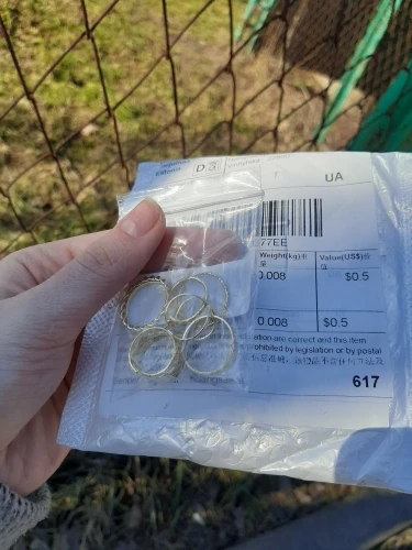 Посылка прибыла в Украину за месяц, трек отслеживался, товар соответствует описанию. Заказываю в этом магазине не в первый раз и не только наборы колец- всегда остаюсь довольна.