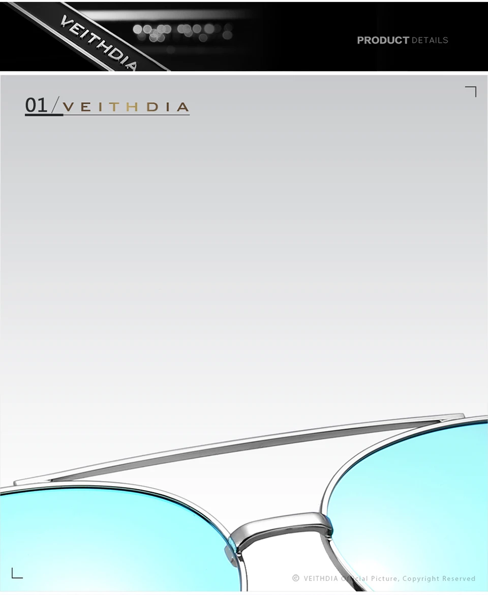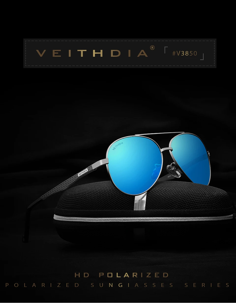 Мужские и женские солнцезащитные очки VEITHDIA, поляризационные зеркальные очки с алюминиевой оправой в стиле пилота, защита UV400, 3850