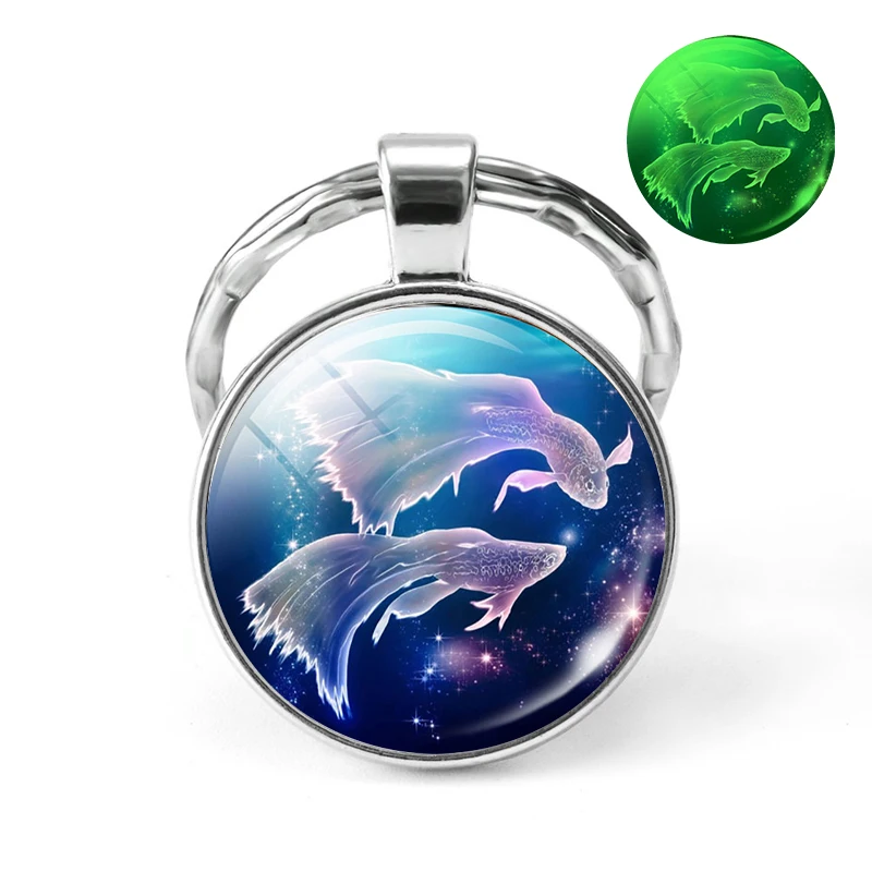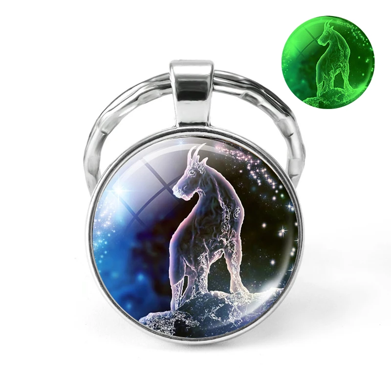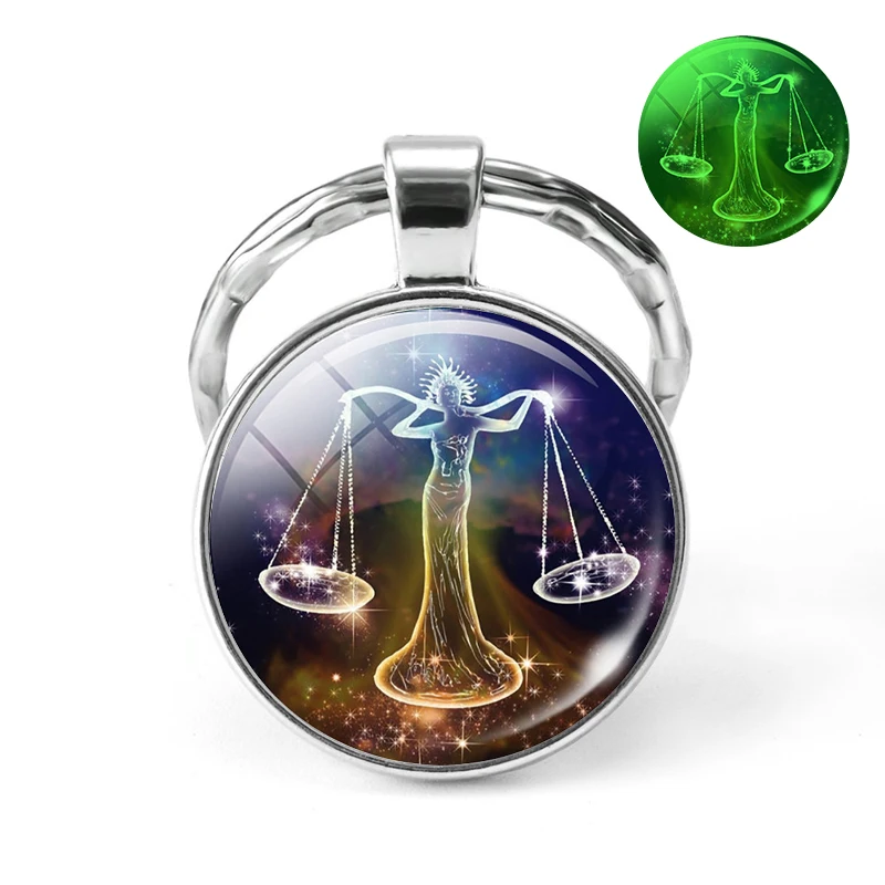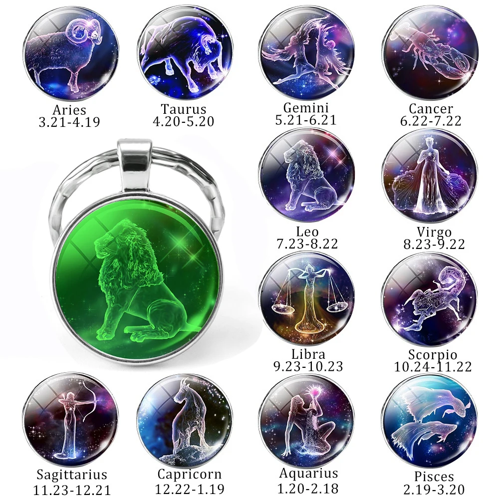 Брелок для ключей со светящимися 12 знаками Зодиака, Созвездие бижутерия со стеклянными кабошонами, брелок Leo светится в темноте, подарки на день рождения