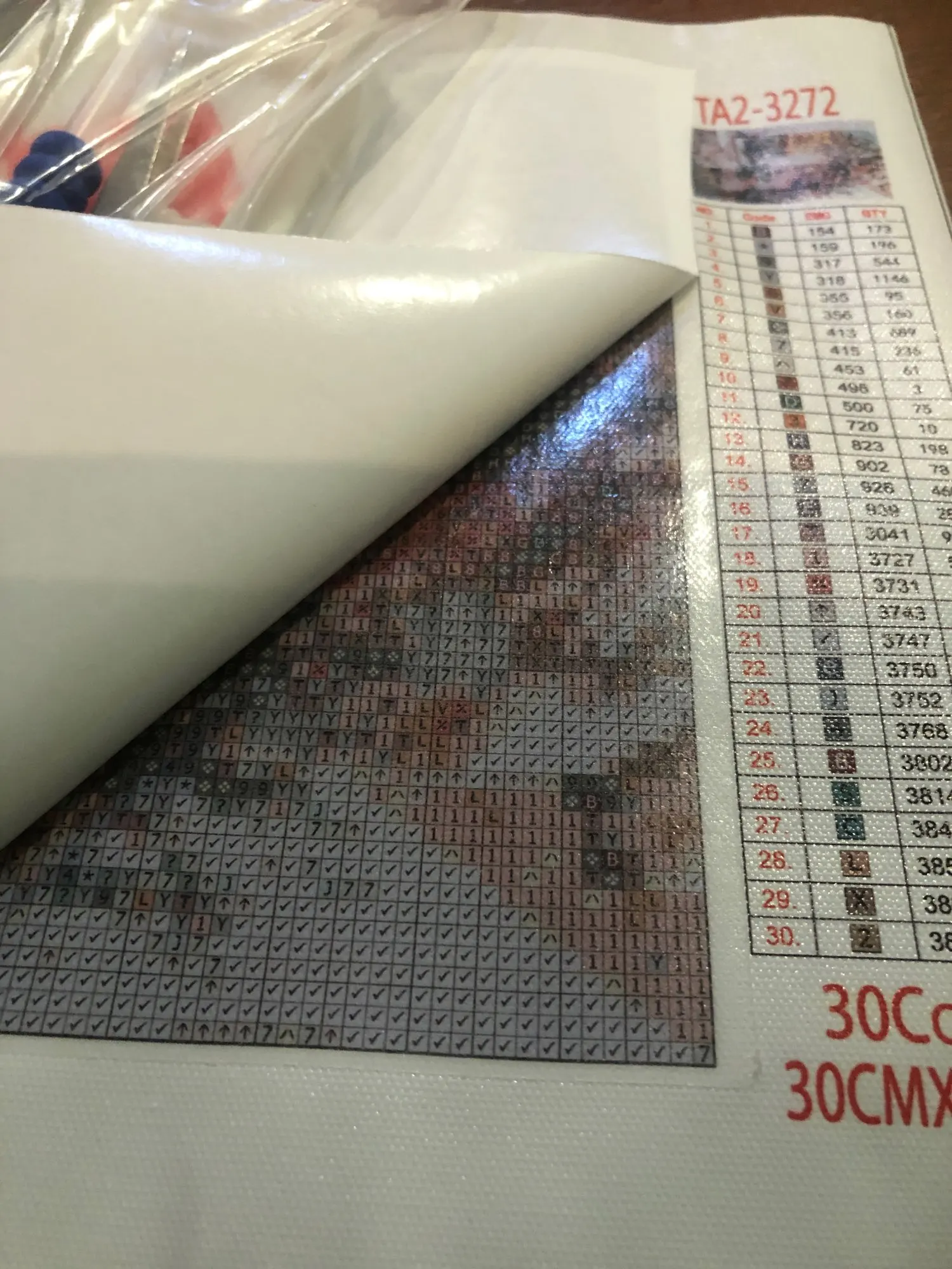 Алмазная вышивка размер 30 на 40. Цветов 30 Липкий слой хороший. Символы четкие. Размер самой картины 29.5*39.0 Количество цветов соответствует заявленному. Обычно алмазов с запасом. квадратные доставка в этот раз почти два месяца. наборе: холст, алмазики, лоток, стилус, липкая масса, пинцет.
