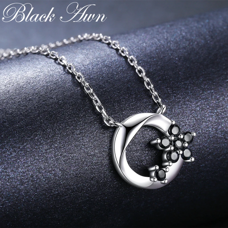 Черное ожерелье AWN классическое из стерлингового серебра 925 пробы ювелирные изделия ожерелье для женщин цветок черный Шпинель круглые ожерелья подвески K036