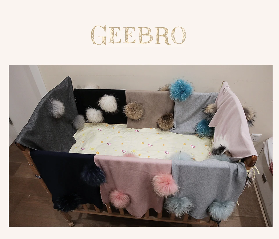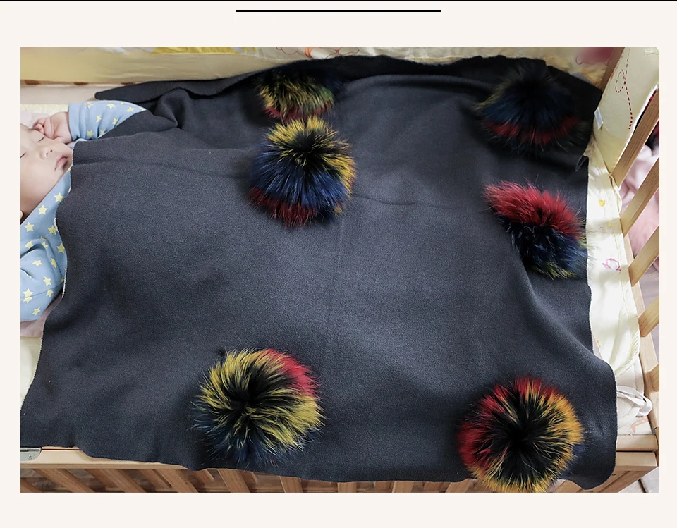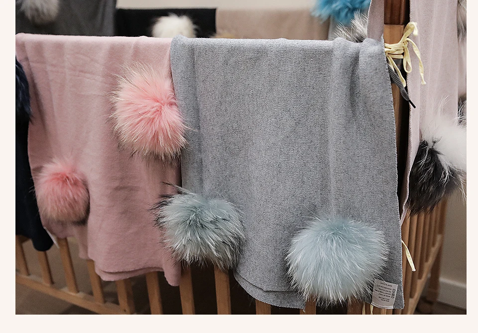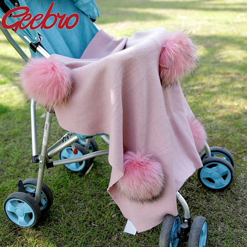 Теплое кашемировое Пеленальное Одеяло Geebro для новорожденных детей, дорожное одеяло для сна, искусственное одеяло с 6 помпонами из натурального меха енота