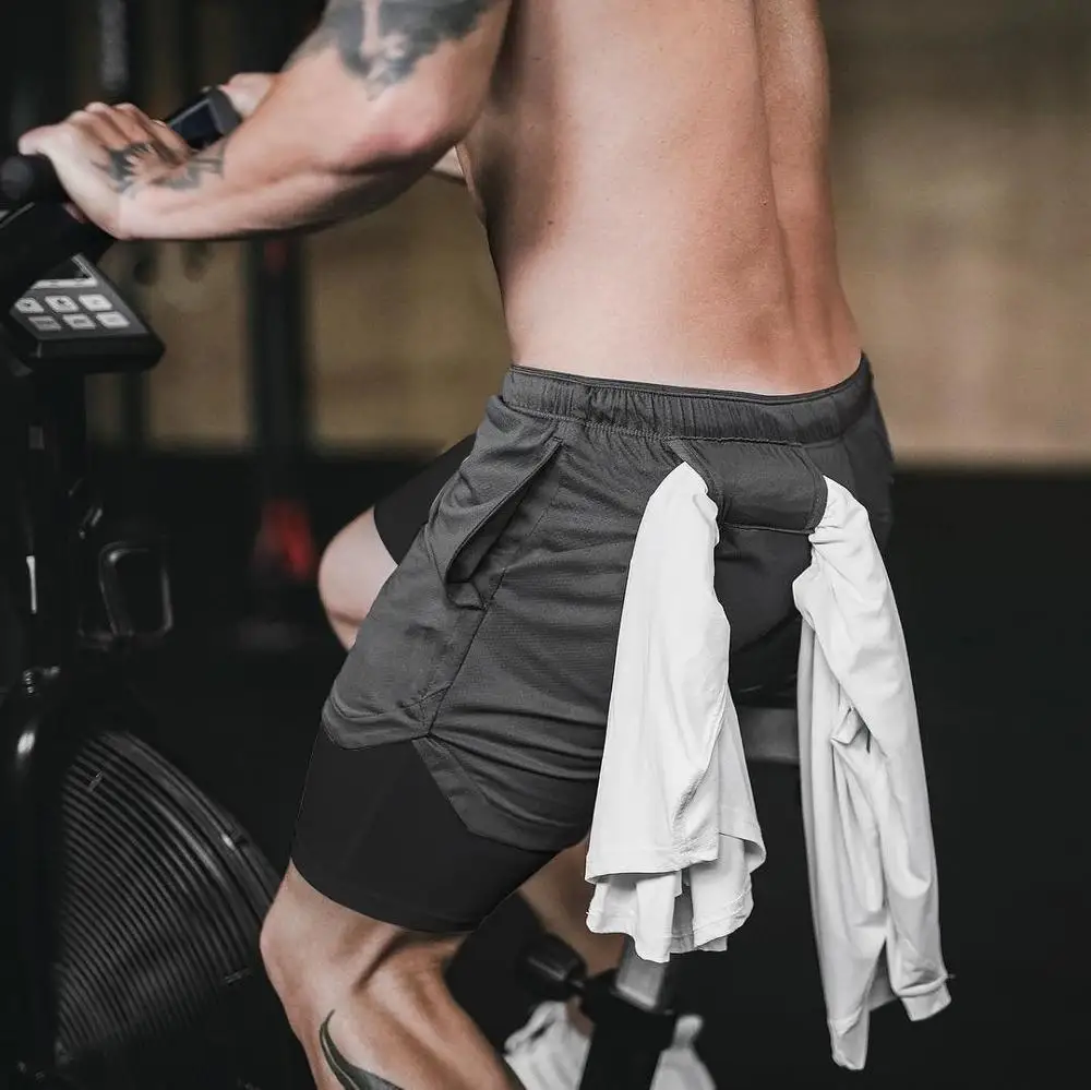 Быстросохнущие шорты для бега мужские шорты 2 в 1 с безопасными карманами и бандажом для полотенец скрытые бедра карманы на молнии встроенные карманы