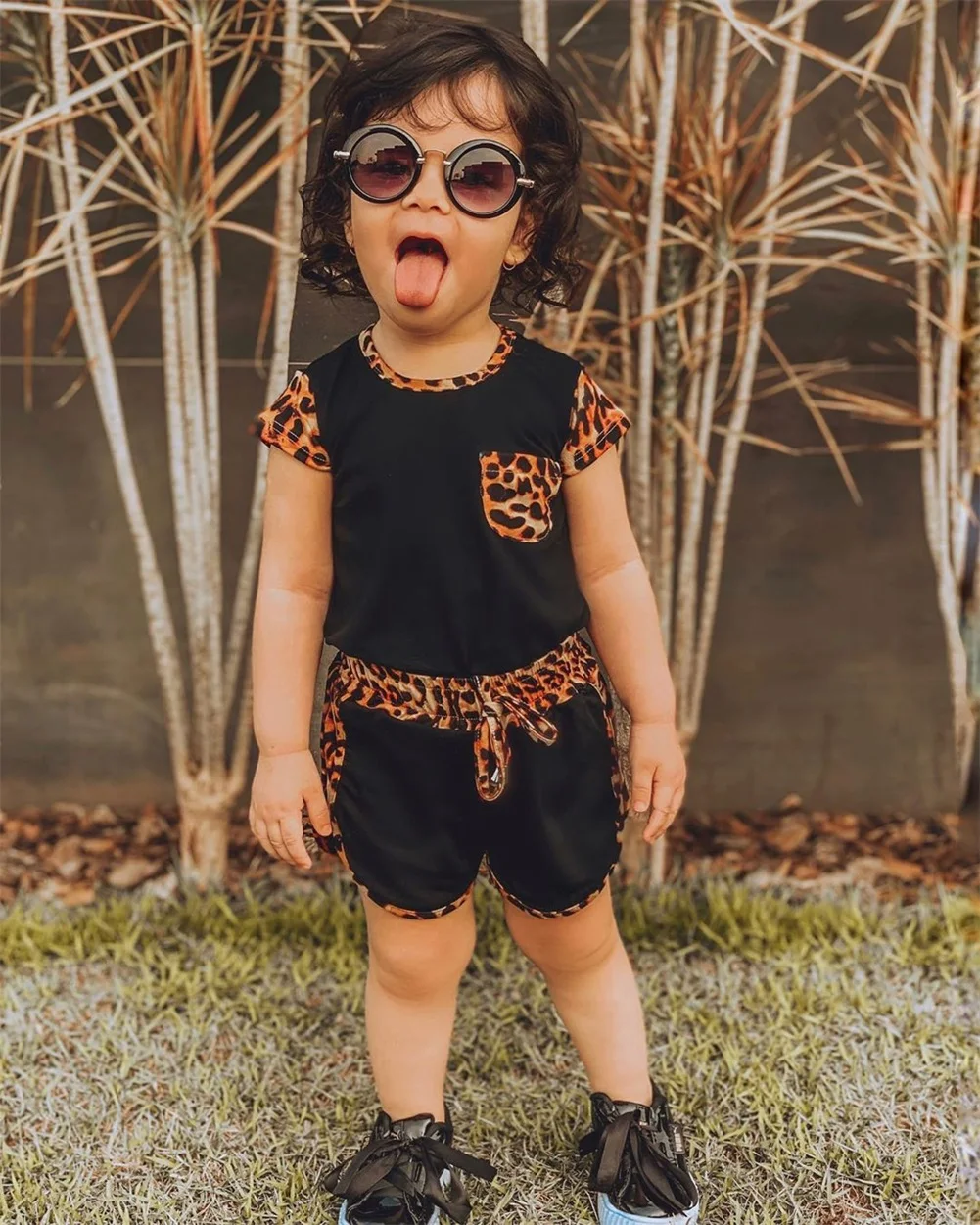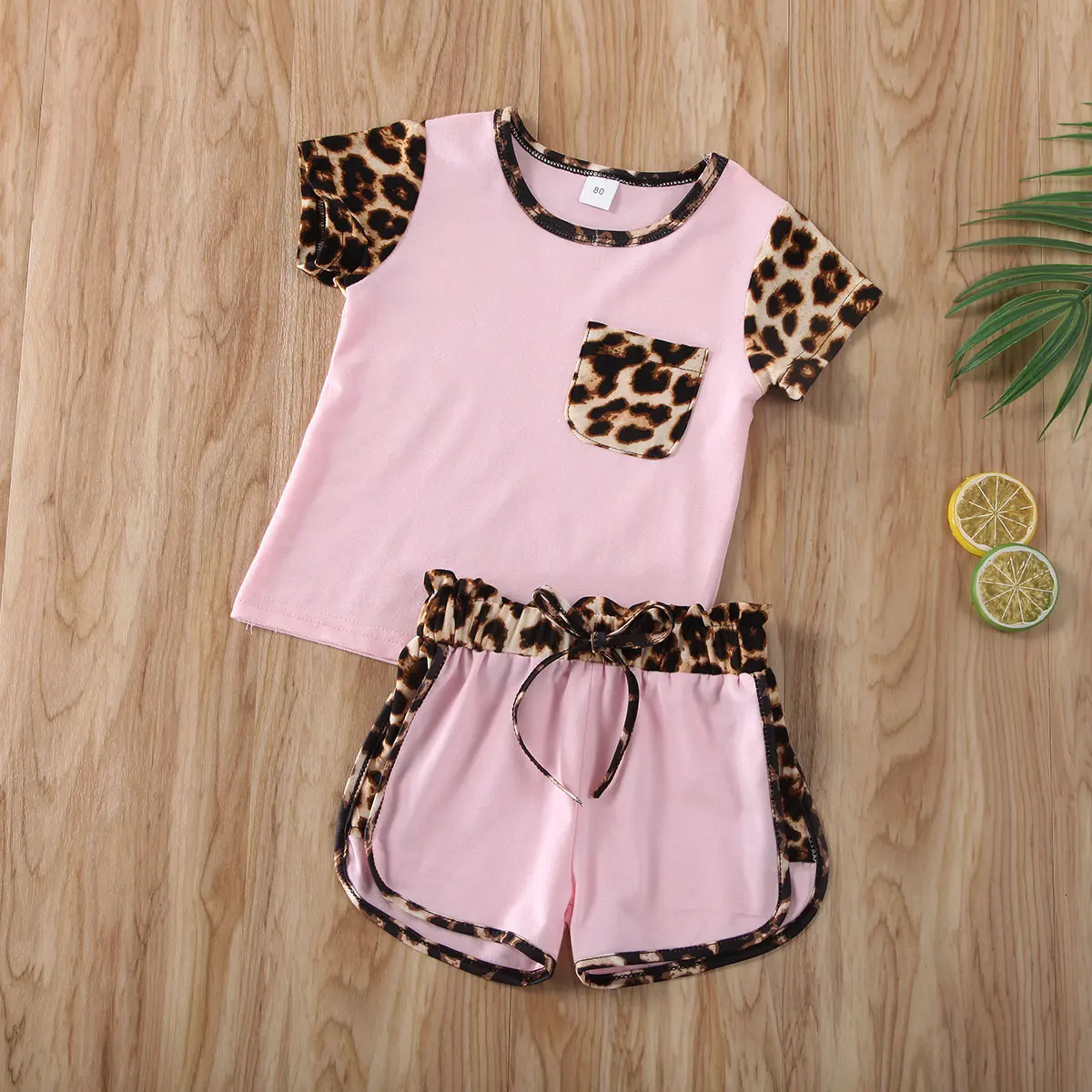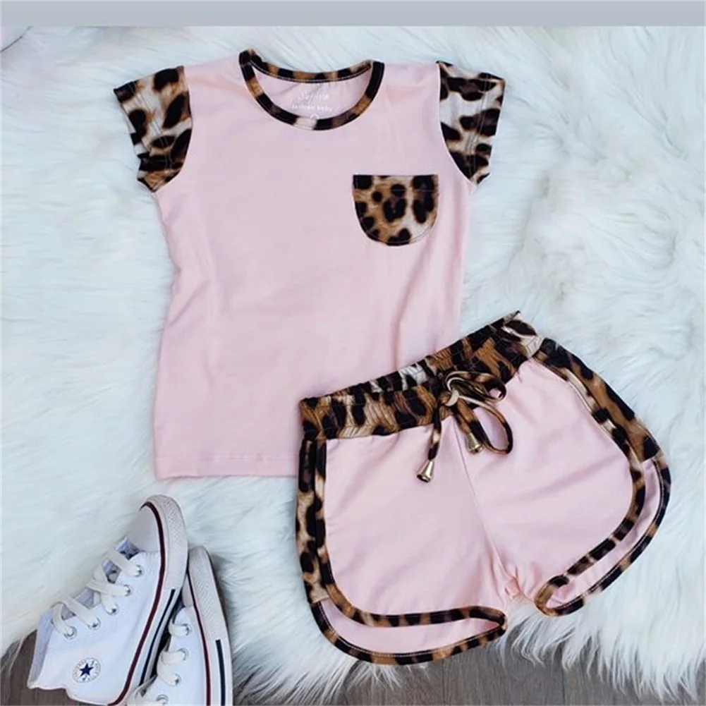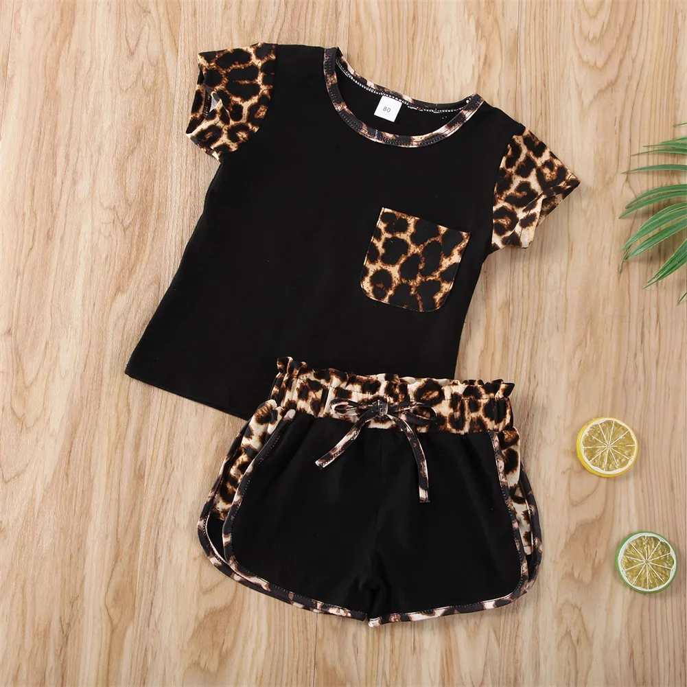 Футболка Pudcoco с коротким рукавом и леопардовым принтом, из 2 предметов, для новорожденных девочек, топы короткие штаны
