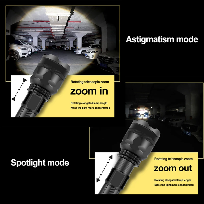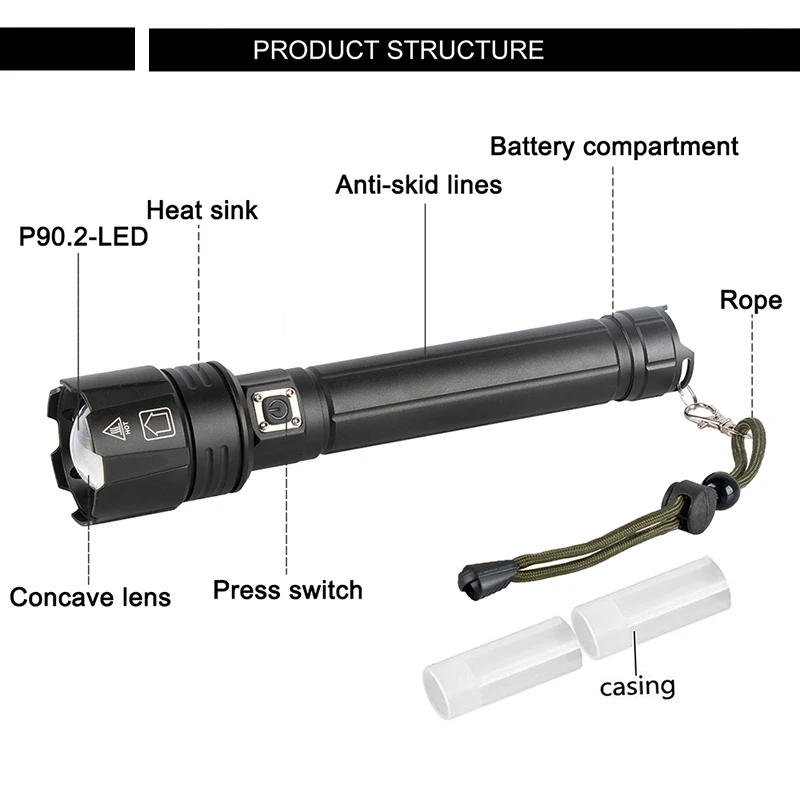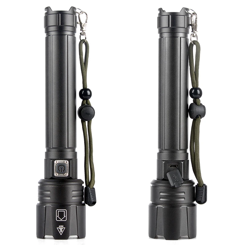 * Мощный светодиодный фонарик XHP70.2/XHP90.2 светодиодный* Увеличьте отсек аккумуляторной батареи 2*18650 или 2*26650, чтобы продлить время работы.* Дисплей емкости батареи, телескопический зум* Micro usb для компьютера USB, автомобиля USB, USB разъем для зарядки, зарядный фонарик* Изготовлен из авиационного алюминиевого сплава прочный HAIII военный сорт Жесткий-анодированный* Водонепроницаемый в соответствии с IPX-6, водонепроницаемый, может использоваться в дождливую погоду, но не может положить его в воду* Подходит для работы, охоты, альпинизма, рыбалки, кемпинга и активного отдыха и т. д.