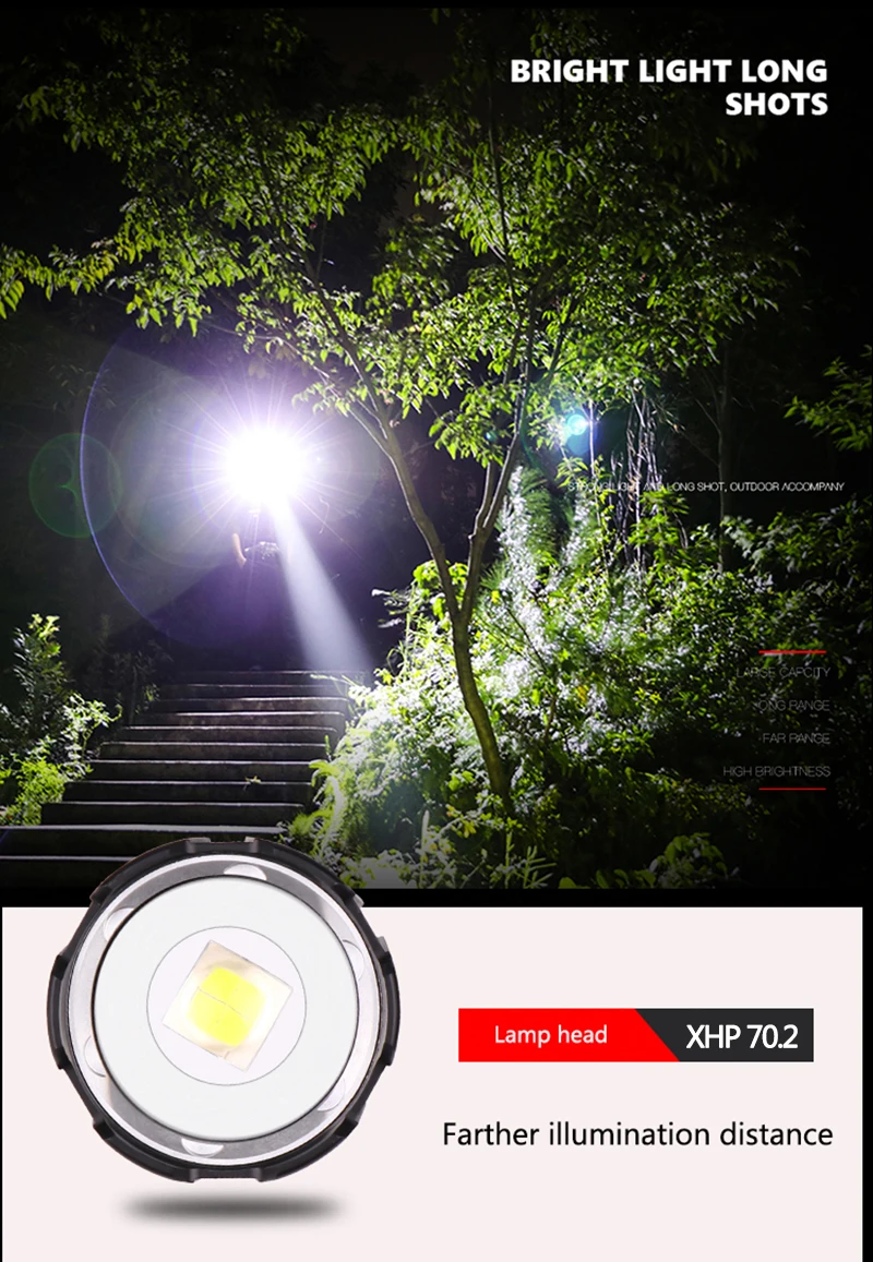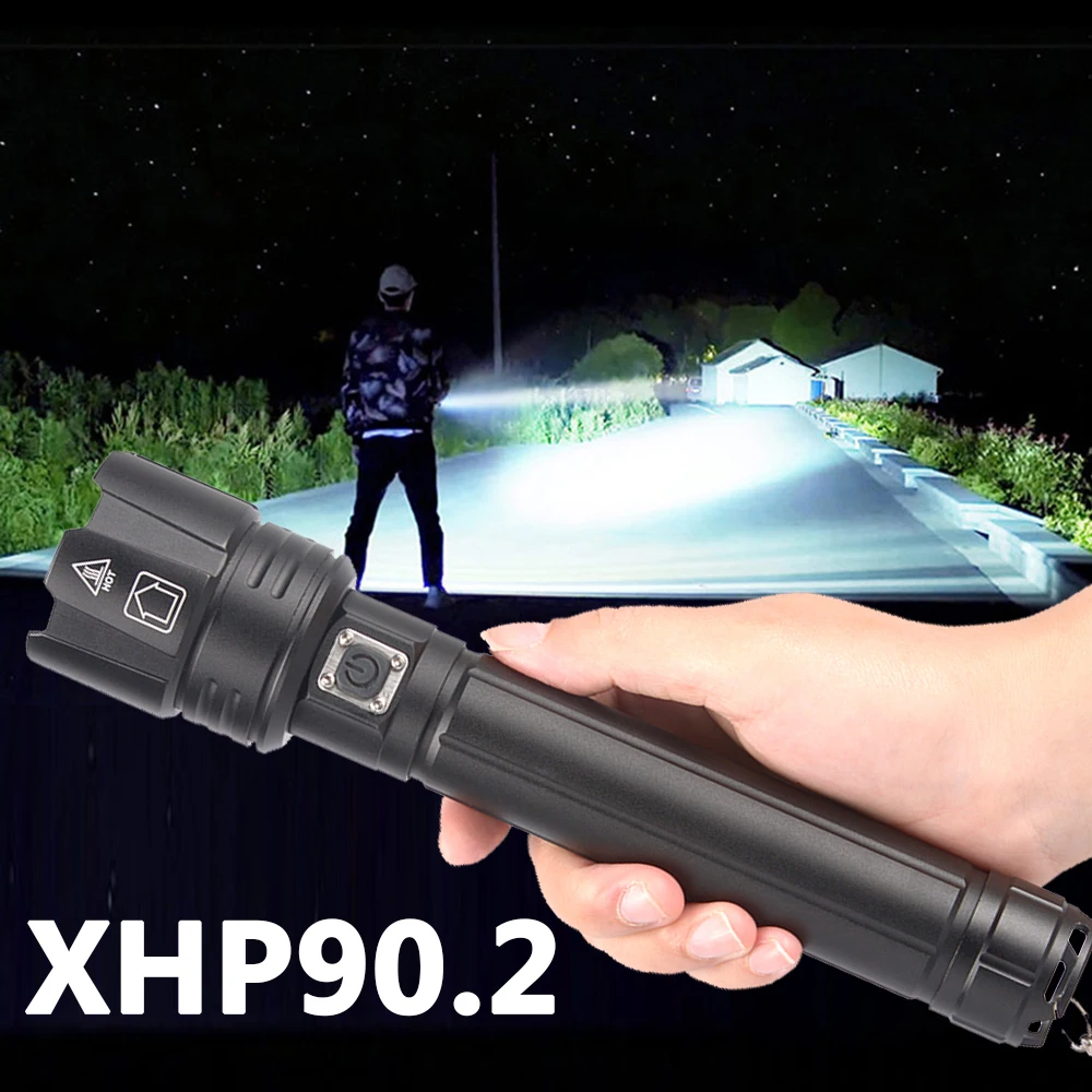 Перезаряжаемый мощный светодиодный фонарик XHP90.2 Xhp70, фонарик, тактический светильник онарь для кемпинга с батареей 18650 26650, масштабируемый водонепроницаемый