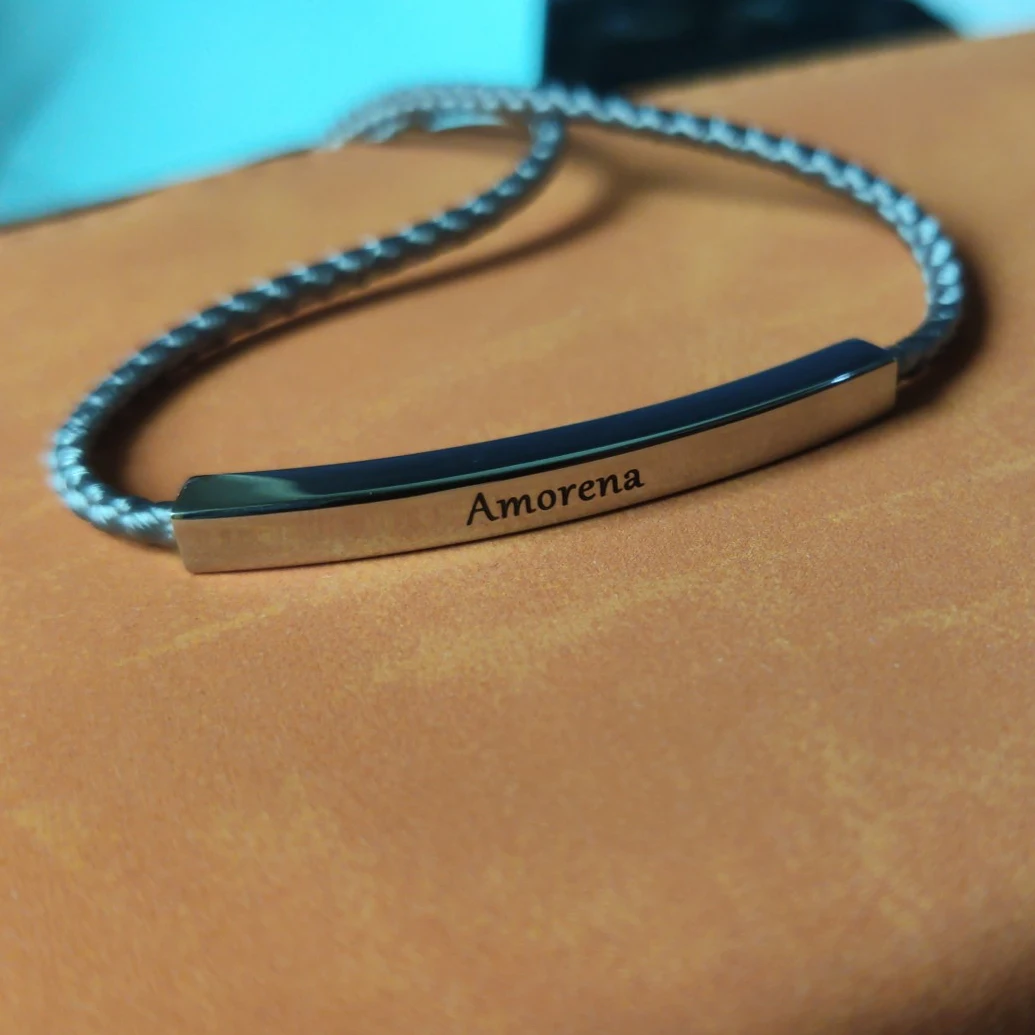 Браслет и гравировка тоже красивые. Хорошо сделано. Я рекомендую его на 100%.