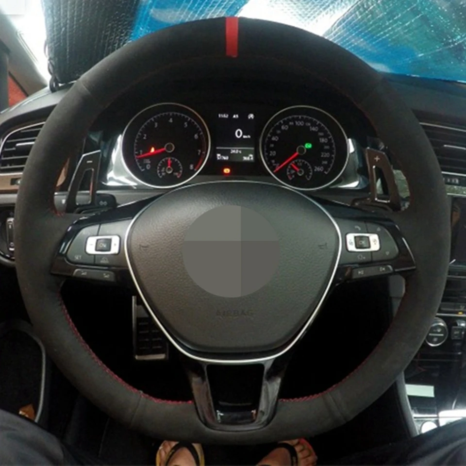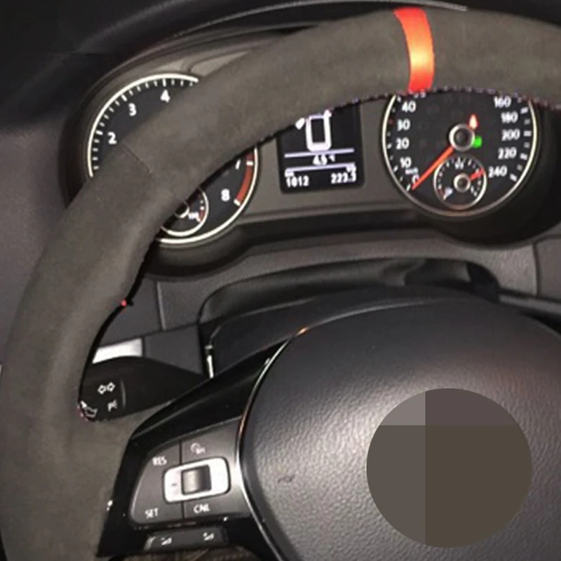 Черная замшевая чехол рулевого колеса автомобиля сделай сам для Volkswagen VW Golf 7 Mk7 Sharan 2016 2017 New Polo Jetta Passat B8 Tiguan 2017